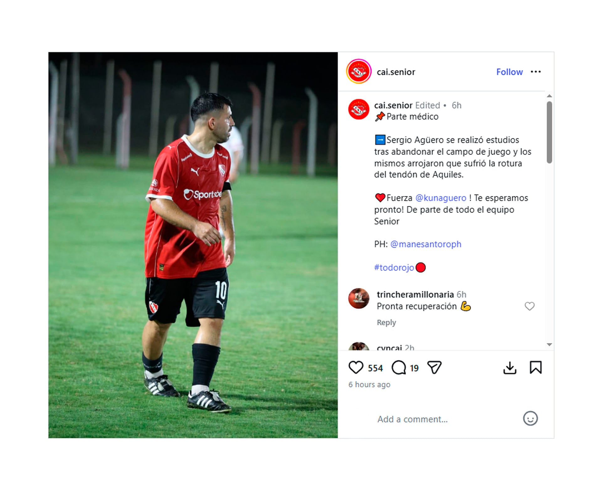 El ex futbolista de 37 años se rompió el tendón de Aquiles y tendrá que pasar por el quirófano...