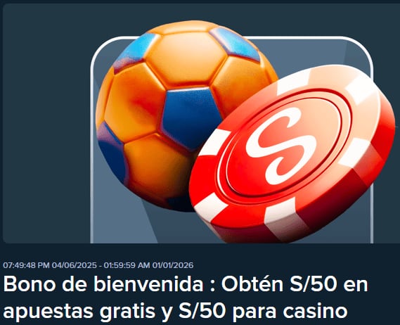 El grupo internacional de apuestas deportivas indica que los nuevos jugadores peruanos de Stake pueden reclamar un bono de bienvenida de S/50 en apuesta gratis y S/50 para casino. Para acceder a la gratificación, se debe abrir una cuenta y realizar una recarga mínima de S/100.