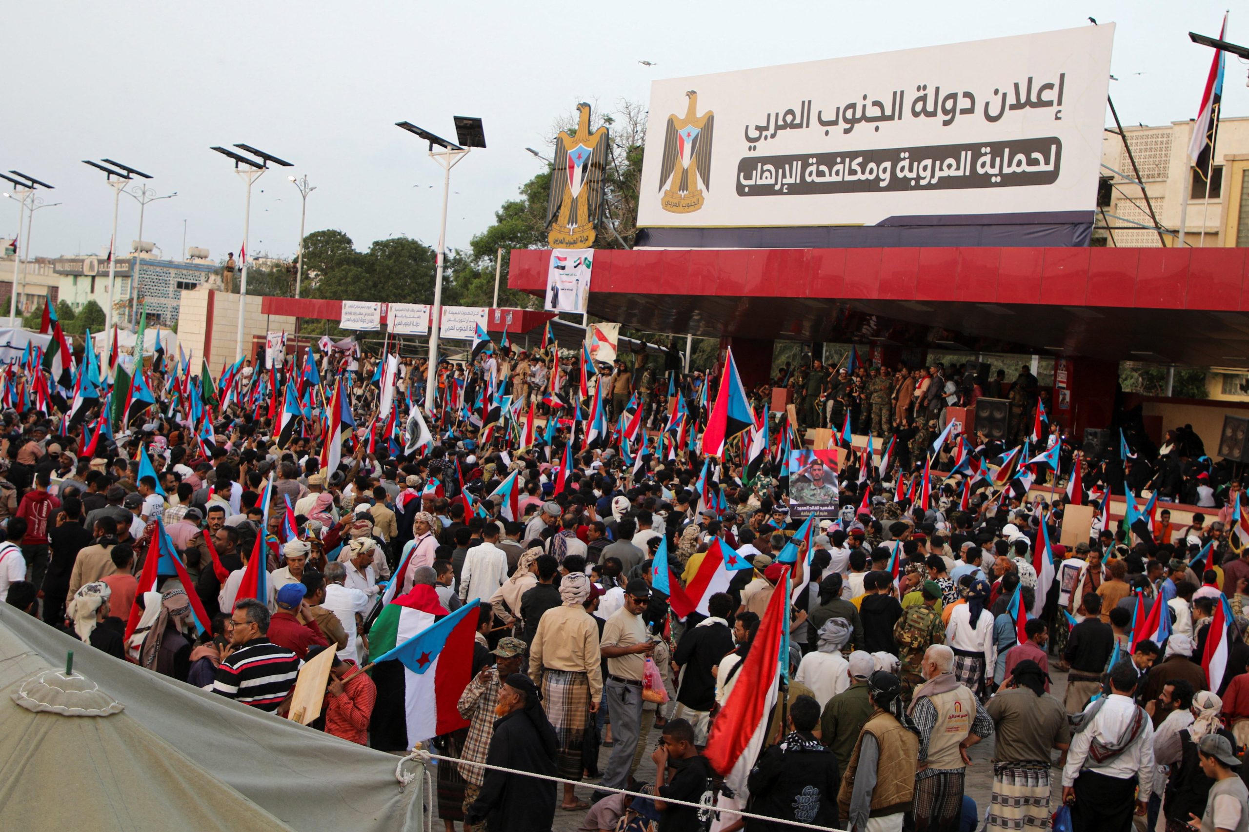 Aliados del Consejo han izado cada vez con mayor frecuencia la bandera de Yemen del Sur, que fue un país independiente entre 1967 y 1990. Manifestantes se reunieron el jueves en la ciudad portuaria de Adén para mostrar su apoyo a las fuerzas políticas que piden que Yemen del Sur se separe nuevamente de Yemen.