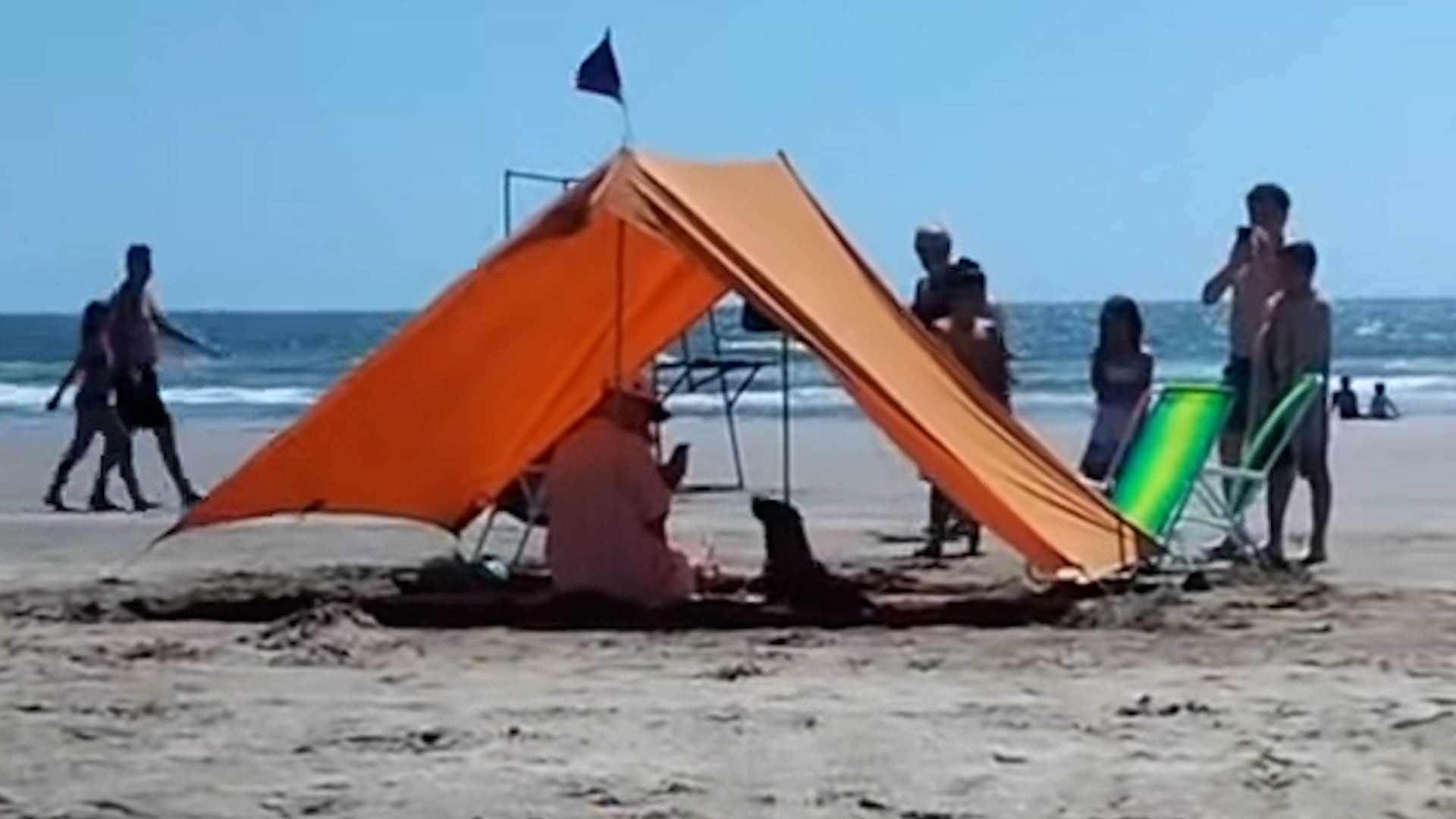 Las imágenes difundidas muestran cómo los turistas instalaban su carpa, buscando protegerse del sol y disfrutar de la tranquilidad del balneario bonaerense. La situación dio un giro inesperado cuando, de repente, un lobo marino apareció entre los bañistas y, sin inmutarse, se dirigió directamente hacia la carpa recién armada.