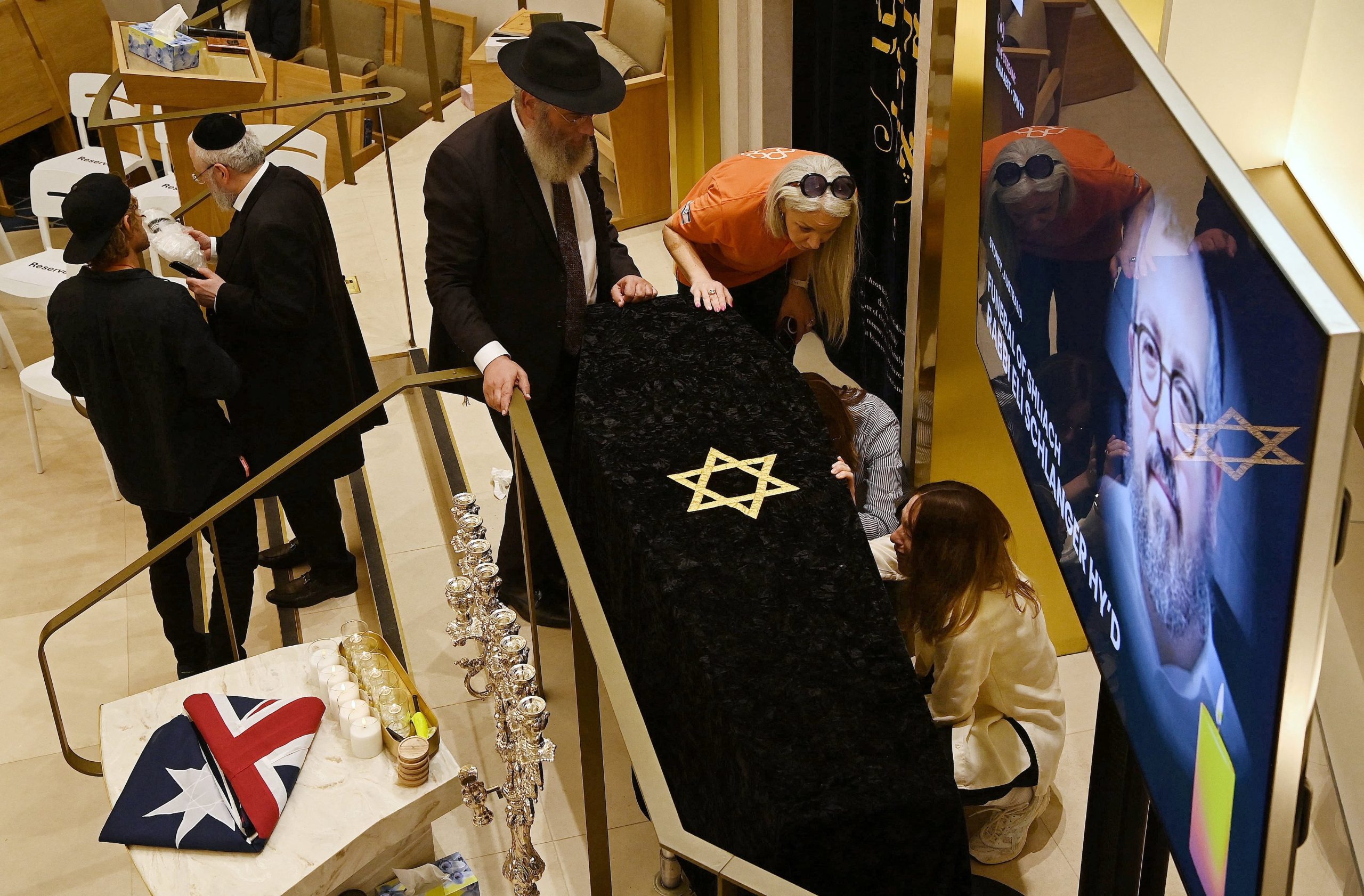 El servicio se realizó en la sinagoga Chabad de Bondi, bajo un fuerte operativo de seguridad, mientras familiares, líderes comunitarios y fieles acompañaron el traslado del cuerpo en un ataúd negro (REUTERS)