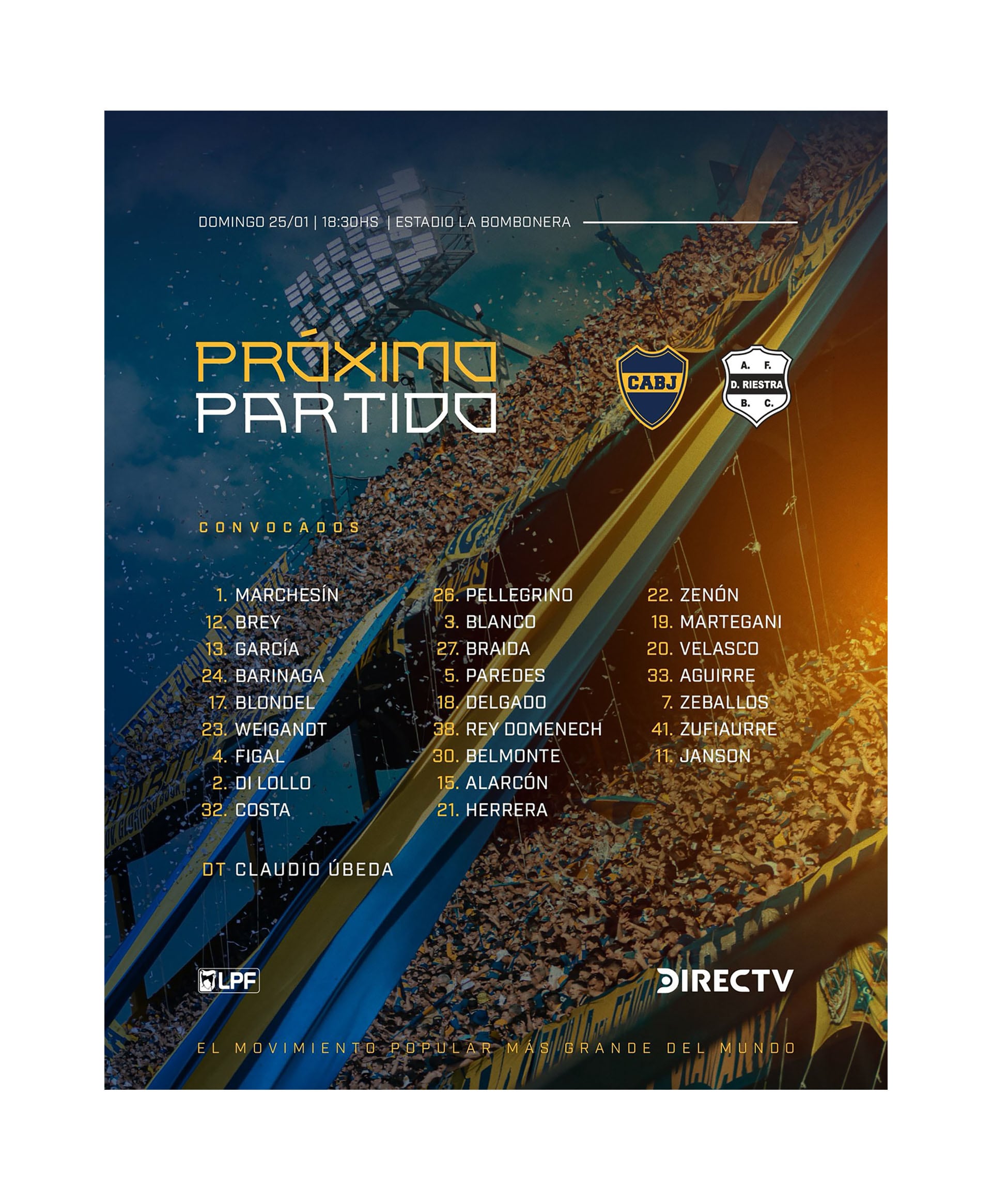 La lista de concentrados de Boca Juniors para el debut en el Torneo Apertura 2026, programado para este domingo a las 18.30 en La Bombonera frente a Deportivo Riestra, presenta varias sorpresas marcadas por la ausencia de figuras clave y la inclusión de juveniles que llegan con buen presente desde la Reserva. En un contexto de múltiples bajas y sin incorporaciones hasta el momento, el club apuesta por alternativas del plantel profesional y promesas surgidas de las divisiones inferiores. El entrenador Claudio Úbeda definió una nómina de convocados con importantes modificaciones.