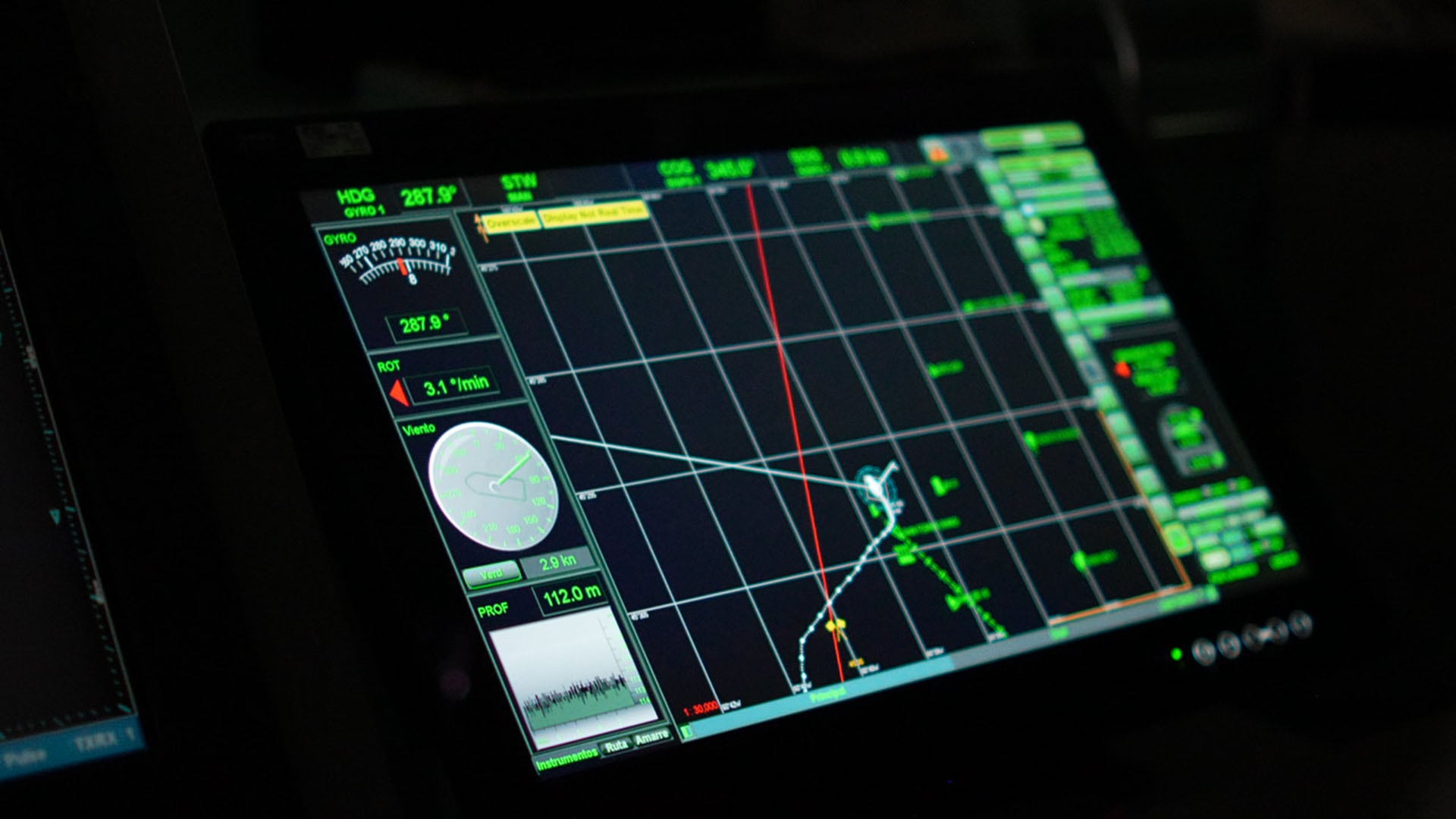 Un efectivo observa posición y movimiento de buques en el Mar Argentino y en la Milla 201