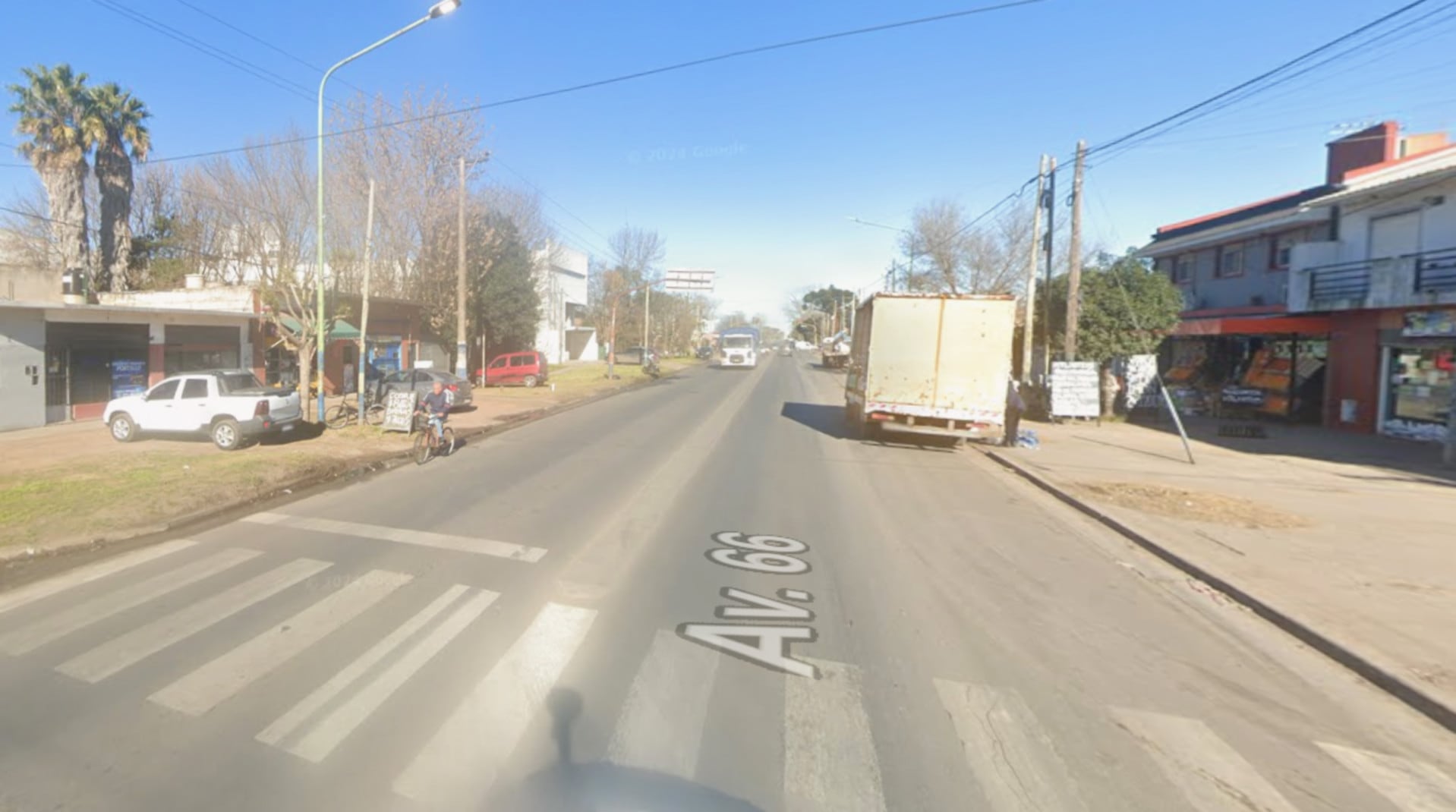 La calle 66 de Los Hornos en La Plata donde dos delincuentes golpearon a un hombre en la cabeza y le robaron la moto (Google Maps)