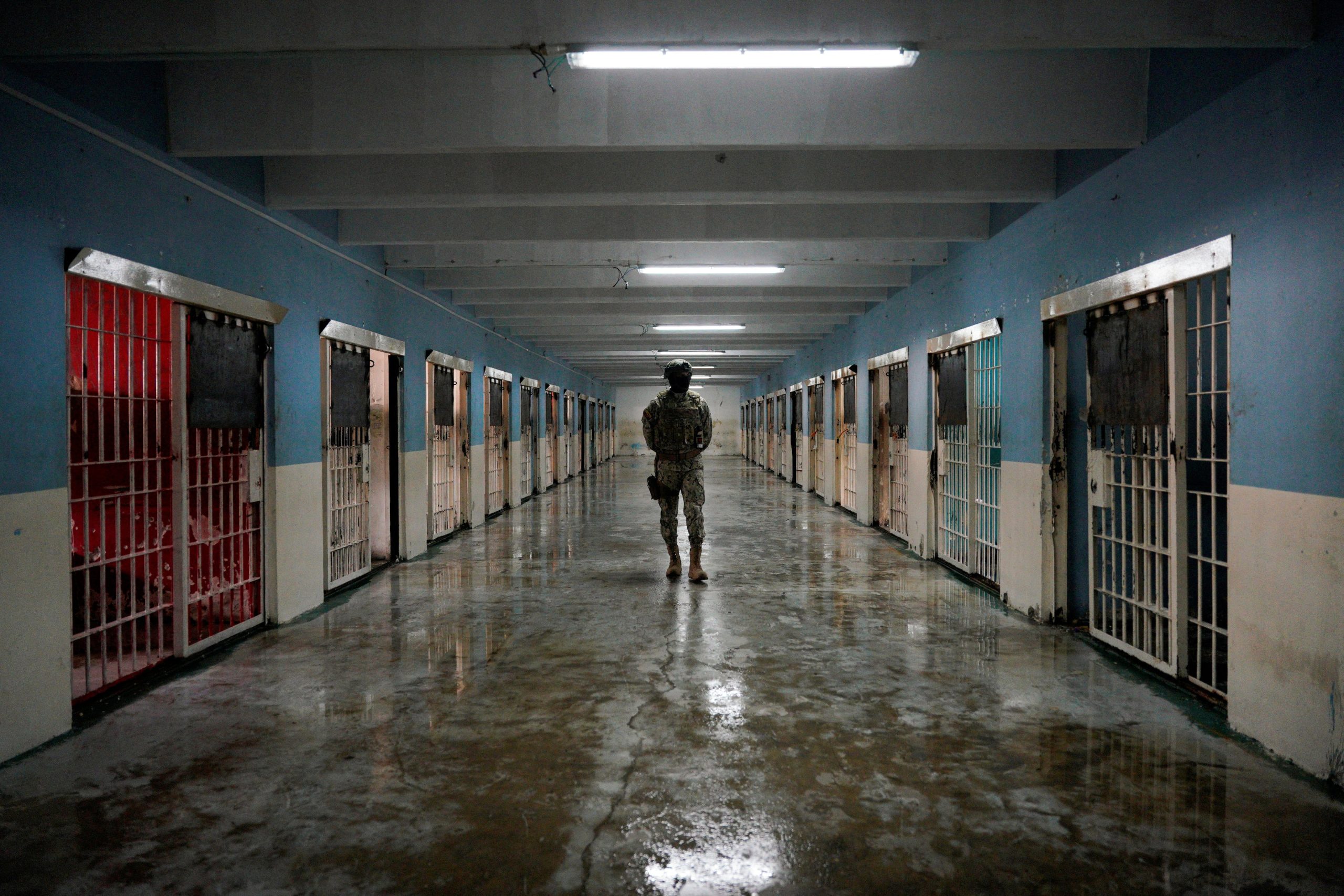 FOTO DE ARCHIVO: Un militar recorre una zona recientemente remodelada de la Penitenciaría del Litoral, en Guayaquil, Ecuador, el 9 de abril de 2025 (REUTERS/Santiago Arcos/Foto de archivo)