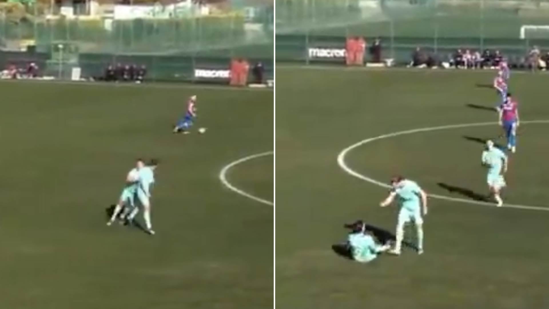 La situación se produjo poco después de que el futbolista griego, de 21 años, ingresara al campo a los 72 minutos de juego. Tras saludar a Behrens de forma rutinaria, ambos parecieron intercambiar unas palabras antes de que el juego continuara con los checos en posesión del balón. De manera repentina, Behrens cambió su trayectoria dentro del campo y, en lugar de dirigirse hacia el rival que tenía el balón, se abalanzó sobre su propio compañero y lo empujó al suelo.