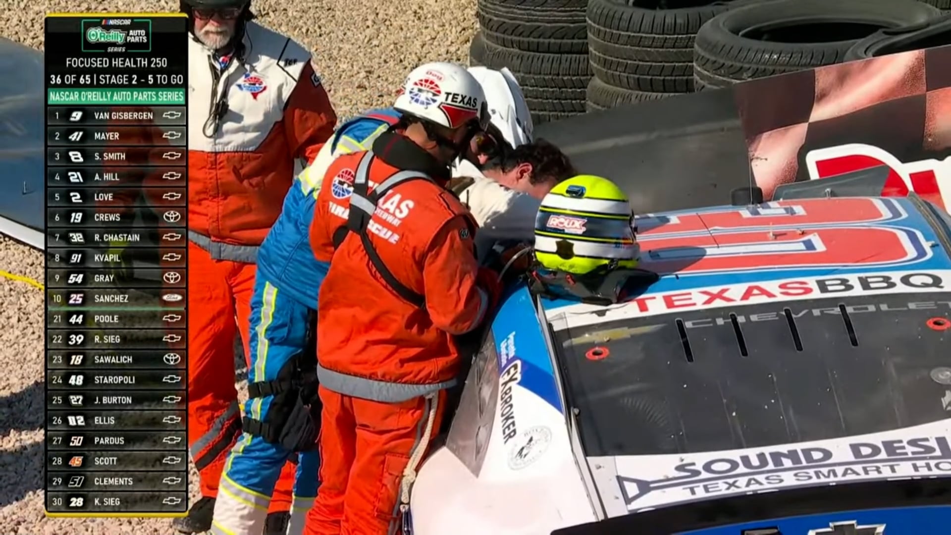 El argentino, que marchaba en la 35° ubicación luego de largar 37°, tuvo que ser atendido rápidamente por los auxiliares médicos. Luego de varios minutos en el que lo estaban revisando, lograron que el piloto de 25 años pudiera salir por la ventana con su ayuda. No obstante, se mostró considerablemente dolorido, al punto de que se tomó unos segundos para apoyar la cabeza en el techo del coche. Cuando se marchaba caminando por sus propios medios, el corredor se tomó su brazo izquierdo.