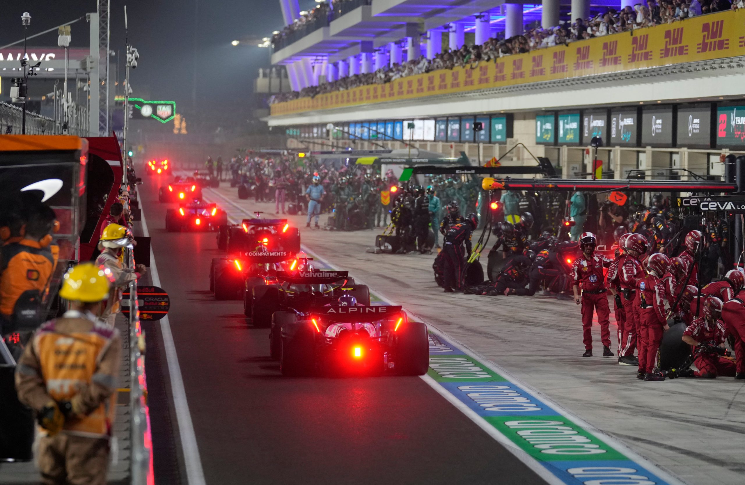 Tras la aparición del Safety Car en los primeros giros de la competencia por el accidente entre Nico Hulkenberg y Pierre Gasly, todos los equipos mandaron a sus pilotos al pitlane para hacer la primera parada. Salvo McLaren, que dejó en pista a Oscar Piastri y Lando Norris, dos de los contendientes al título. En la vuelta 32 se produjo el caos en el acceso de los monoplazas para los cambios de neumáticos.