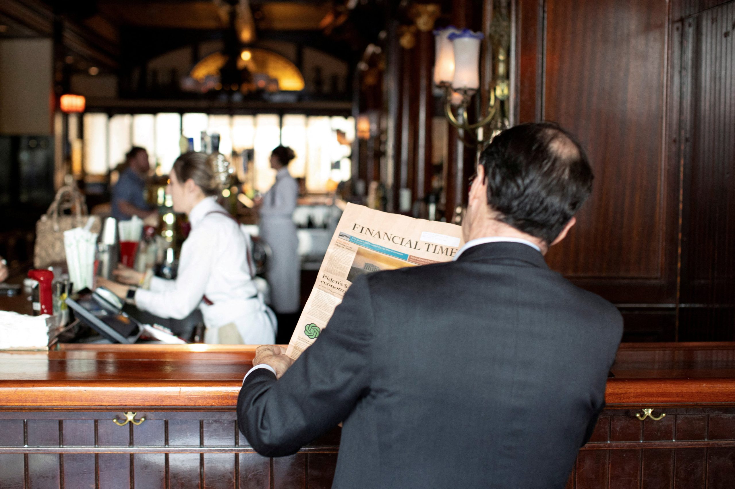 David Barnes reads the Financial Times while having lunch at the Old Ebbitt Grill in Washington, U.S., August 13, 2024. REUTERS/Kaylee Greenlee Beal