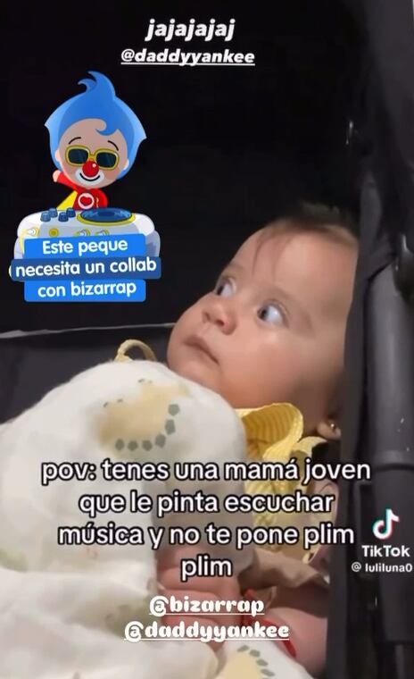 El video que originó el fenómeno mostraba a una madre joven en TikTok que, en tono humorístico, prefería poner música de Bizarrap y Daddy Yankee en lugar de las canciones de Plim Plim para su hija. La escena, acompañada por la frase “POV: tenés una mamá joven que le pinta escuchar música y no te pone Plim Plim”, mostraba a una bebé observando el televisor con un gesto serio mientras sonaba “Daddy Yankee: BZRP Music Sessions Vol. 0/66”.