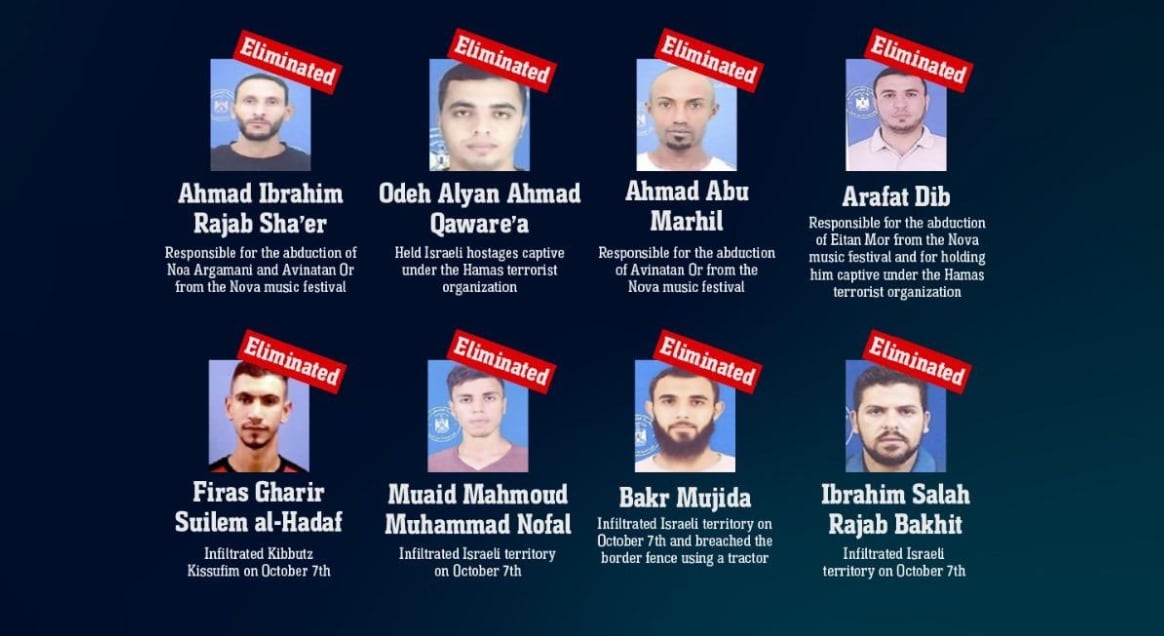 El Ejército de Israel anunció este jueves que eliminó en ataques selectivos a ocho milicianos del grupo terrorista Hamas identificados como participantes directos en el asalto y los secuestros ocurridos el 7 de octubre de 2023, en el que murieron 1.200 personas y 251 fueron tomadas como rehenes en territorio israelí.