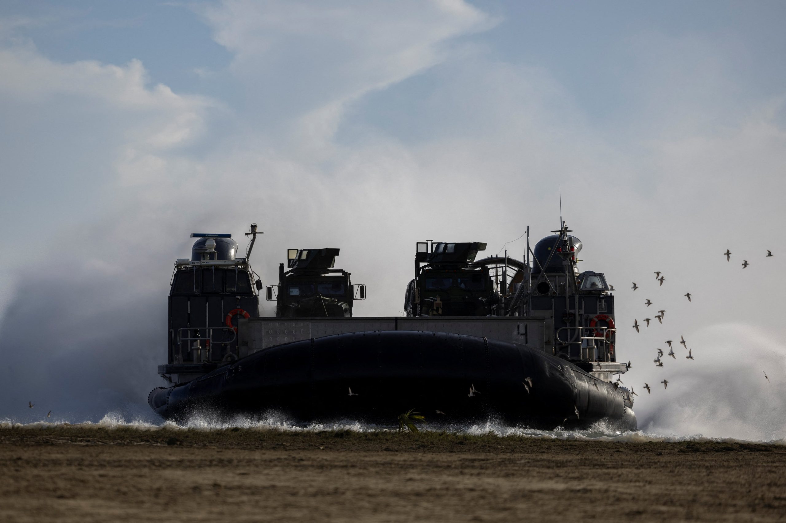 Un Landing Craft Air Cushion (LCAC) de la Marina estadounidense durante un entrenamiento en la playa, en Arroyo, Puerto Rico (REUTERS/Ricardo Arduengo)