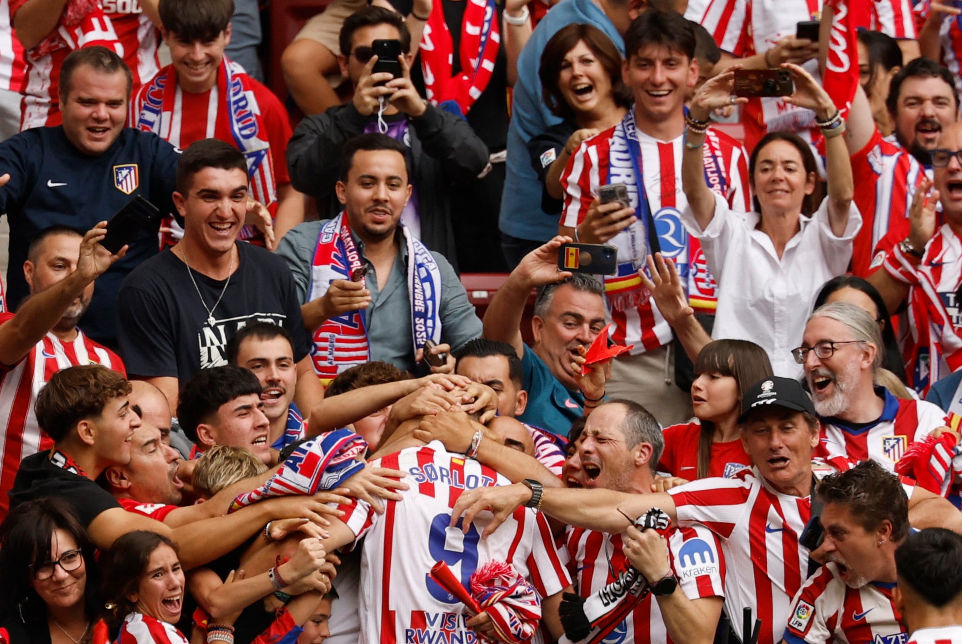 La victoria del Atlético de Madrid sobre el Real Madrid por 5-2 no solo dejó goles y euforia, sino también la anécdota viral de una aficionada que encontró un objeto insólito en el sector 109 del estadio (REUTERS/Susana Vera)
