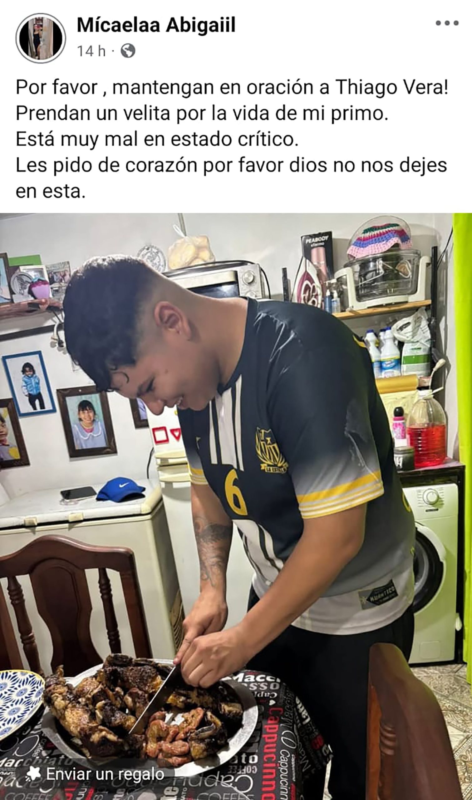 Mientras el joven continúa internado en el Hospital Eva Perón, sus seres queridos compartieron mensajes de apoyo en redes sociales. “Prendan una velita por la vida de mi primo, está muy mal, en estado crítico”, fue uno de los mensajes que difundió su familia y que encabeza esta nota.