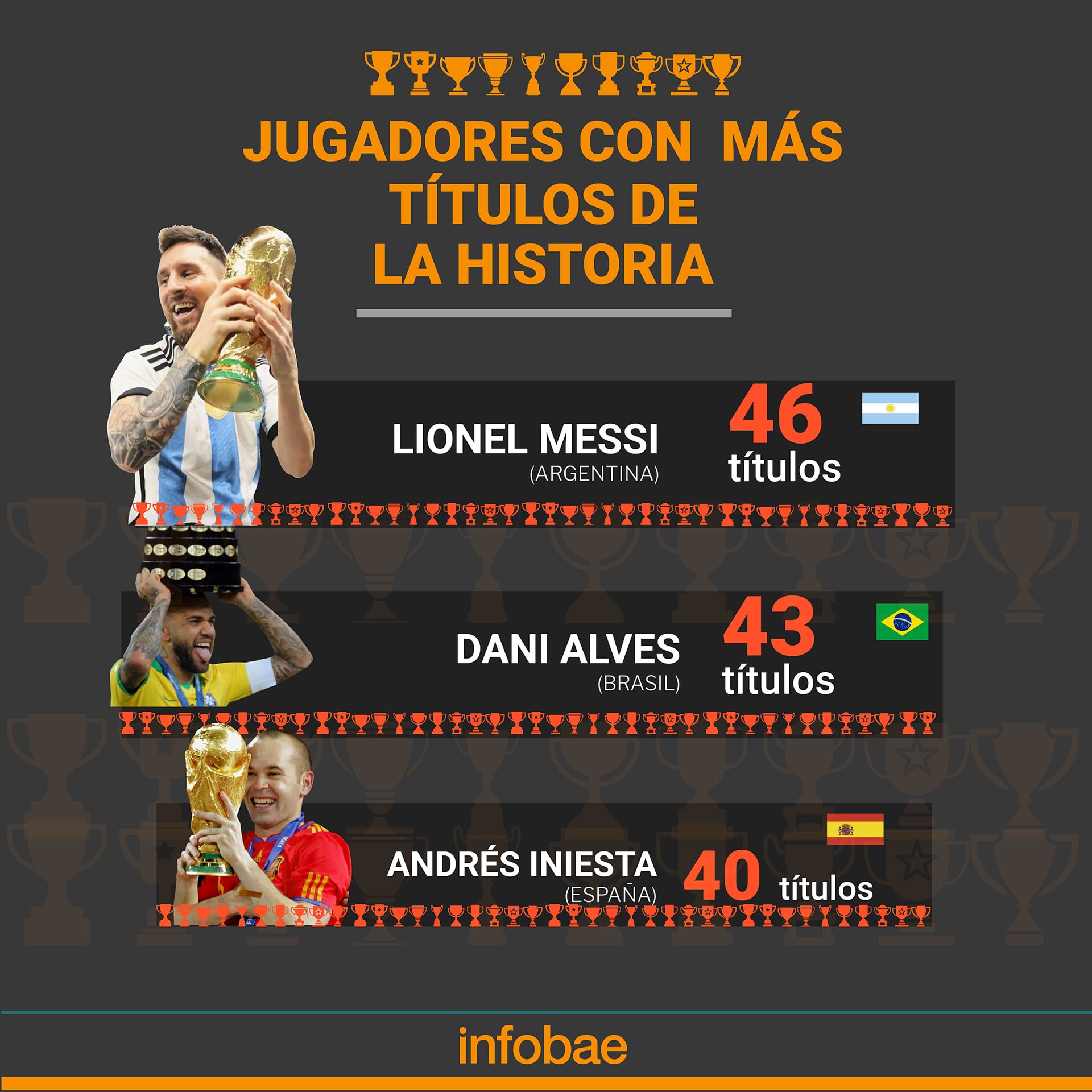 Por este motivo, se podría llegar como conclusión de que Messi mantiene 46 títulos en su palmarés, a la espera de la definición de la MLS Cup de este sábado para sumar un nuevo trofeo. Convertido desde hace tiempo en el futbolista más ganador de la historia, Leo sigue con una importante brecha que lo distancia de Dani Alves (43), Andrés Iniesta (40) y Marquinhos (40) en el podio histórico.