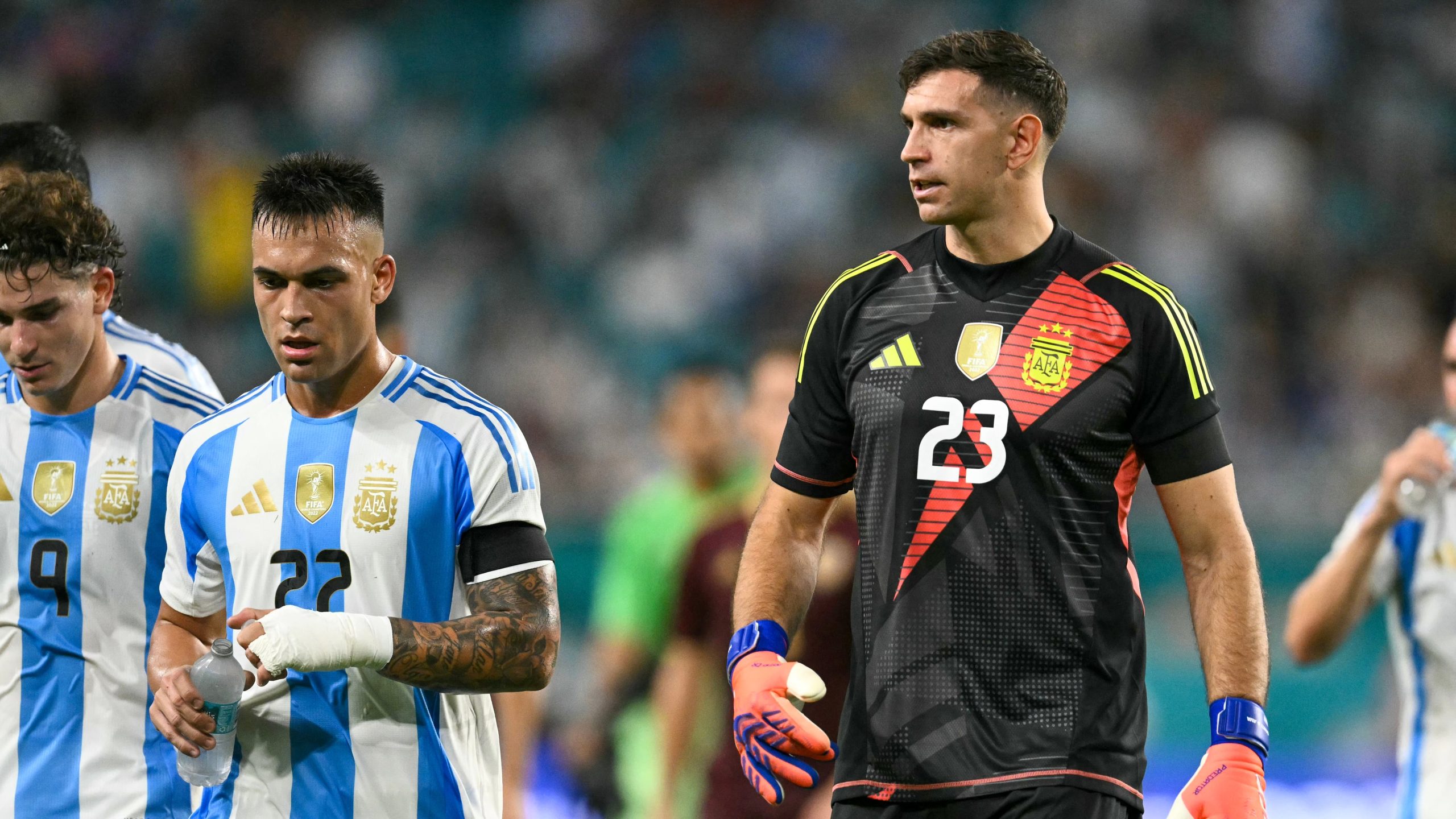El presente del Dibu Martínez, a sus 33 años, incluye también desafíos físicos. Días antes del choque con Venezuela, el arquero sorprendió al revelar a través de sus redes sociales que había disputado partidos en Inglaterra con un desgarro en la pantorrilla. Ante la prensa, el entrenador Lionel Scaloni aclaró que el futbolista se encontraba disponible. “Emiliano está en condiciones de jugar, ha hecho un trabajo diferenciado, también se entrenó con Martín Tocalli en algunos momentos y está disponible. Ya veremos si va a jugar, pero está en condiciones”, mencionó Scaloni.