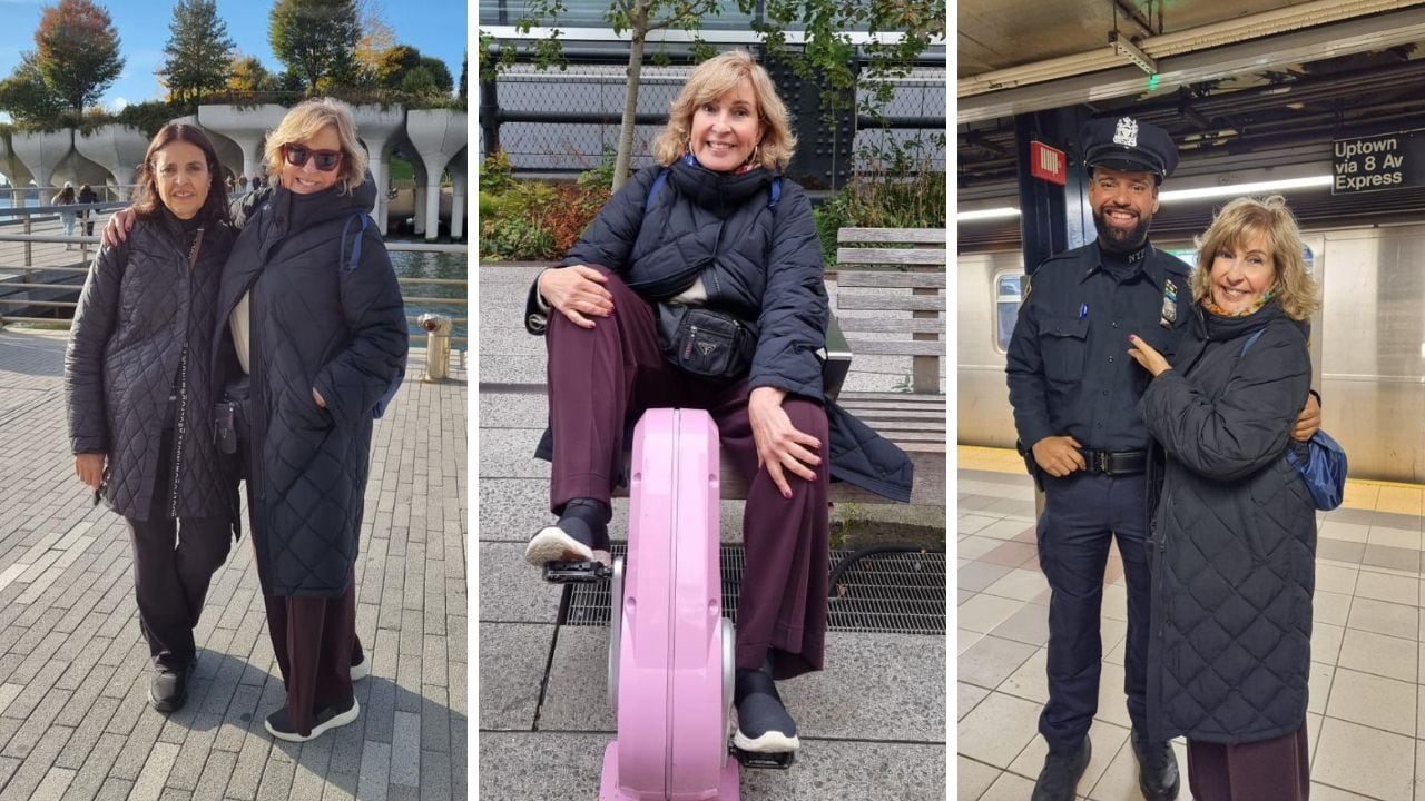 En una de las postales más llamativas del viaje, se la ve posando divertida junto a una escultura rosada de forma excéntrica, una de las instalaciones contemporáneas del High Line, el parque elevado que atraviesa Manhattan. Allí, entre obras de arte y vistas panorámicas, la conductora se mostró sonriente y relajada, disfrutando del otoño neoyorquino.