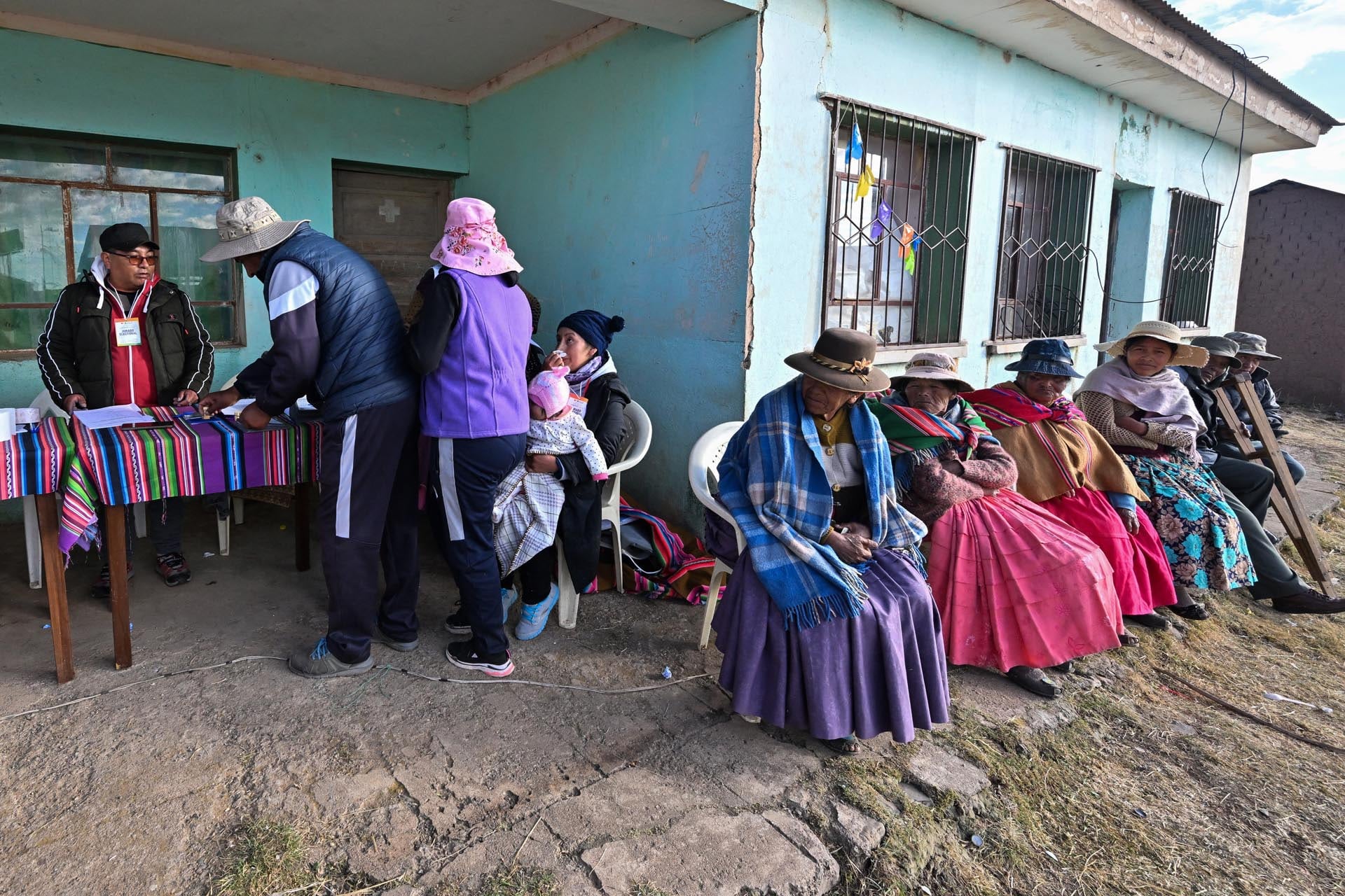 Indígenas esperan para votar en un colegio electoral durante las elecciones presidenciales en la comunidad de Kentupata en Laja, departamento de La Paz, Bolivia, el 17 de agosto de 2025 (Foto de Aizar Raldes/AFP)