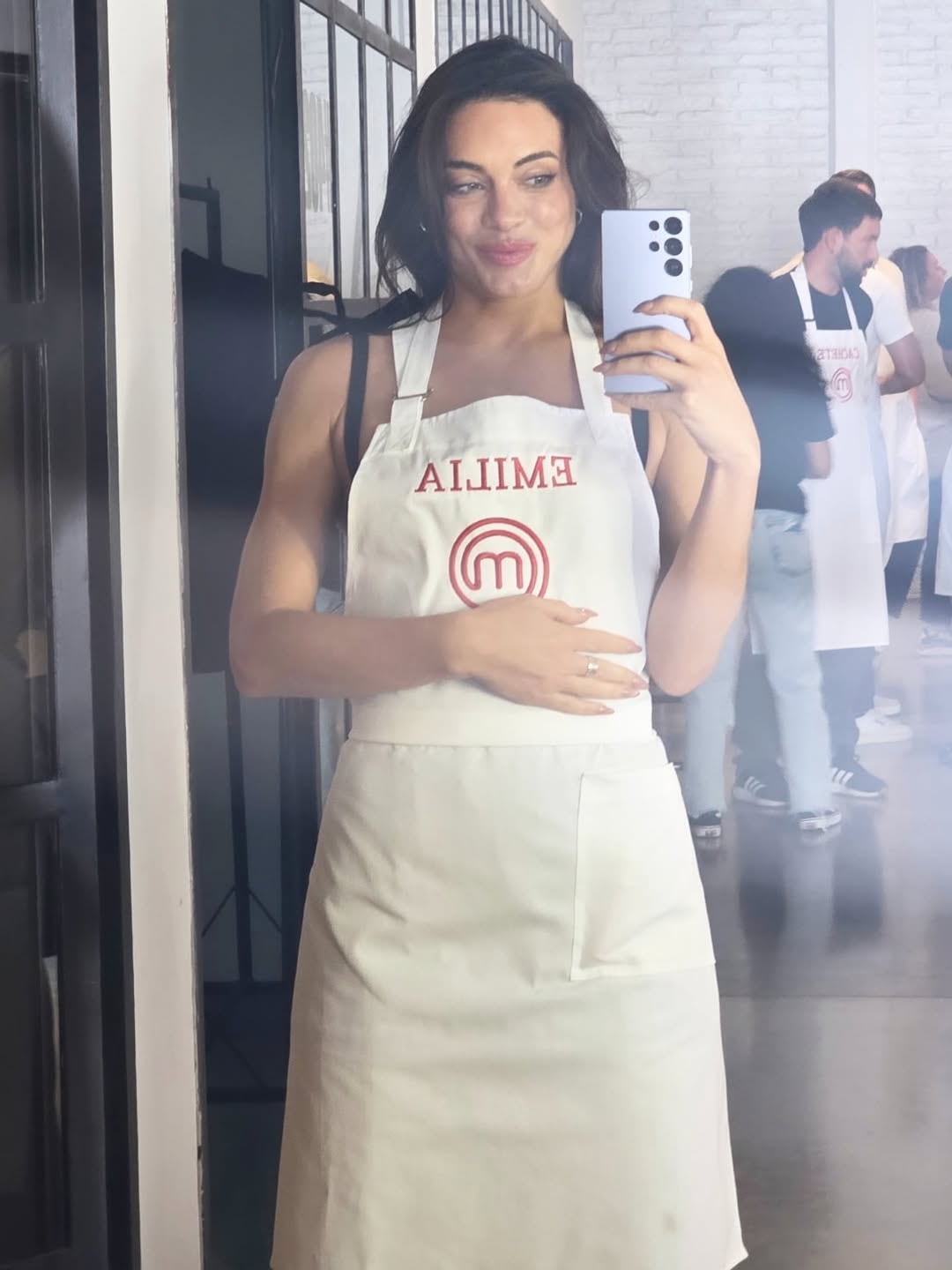 La galería se completa con una imagen de celebración pura y comunidad: junto a Ian Lucas, Cachete Sierra, Evangelina Anderson, Susana Roccasalvo y Sofía Gonet, compañeros de esta edición, Emilia sonríe. Todos juntos, enfundados en sus delantales blancos con los nombres grabados en rojo, reflejan la camaradería y la energía previa al debut. En ese retrato colectivo asoma una certeza: más allá de la competencia, en la cocina de Masterchef la historia también se escribe en plural. Se verá si este compañerismo continúa al calor de la competencia.