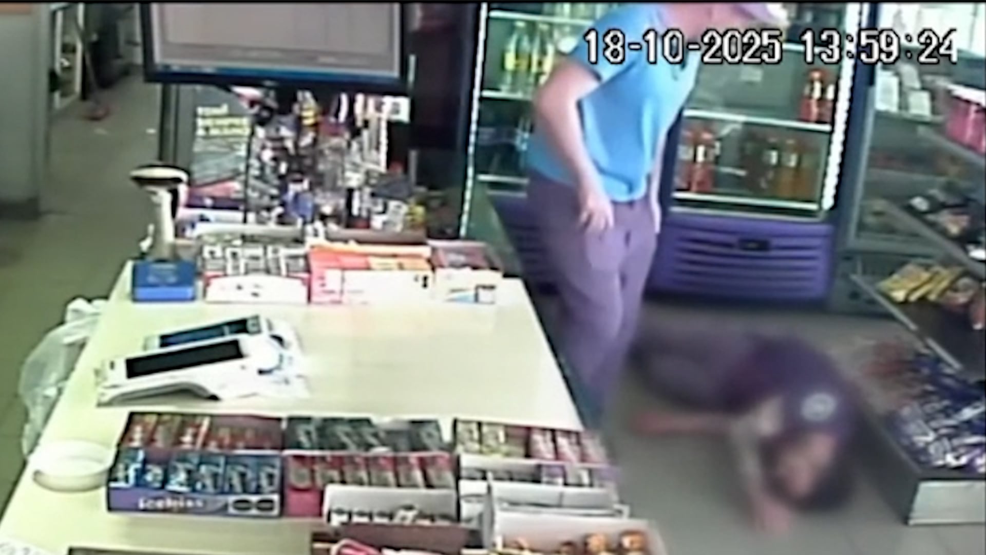 En las imágenes se puede observar el momento en el que el hombre ingresó a una estación de servicio y, tras acercarse al mostrador, comenzó a perder el equilibrio hasta quedar tendido en el suelo. Otro hombre acudió para asistirlo, mientras los empleados pedían ayuda.