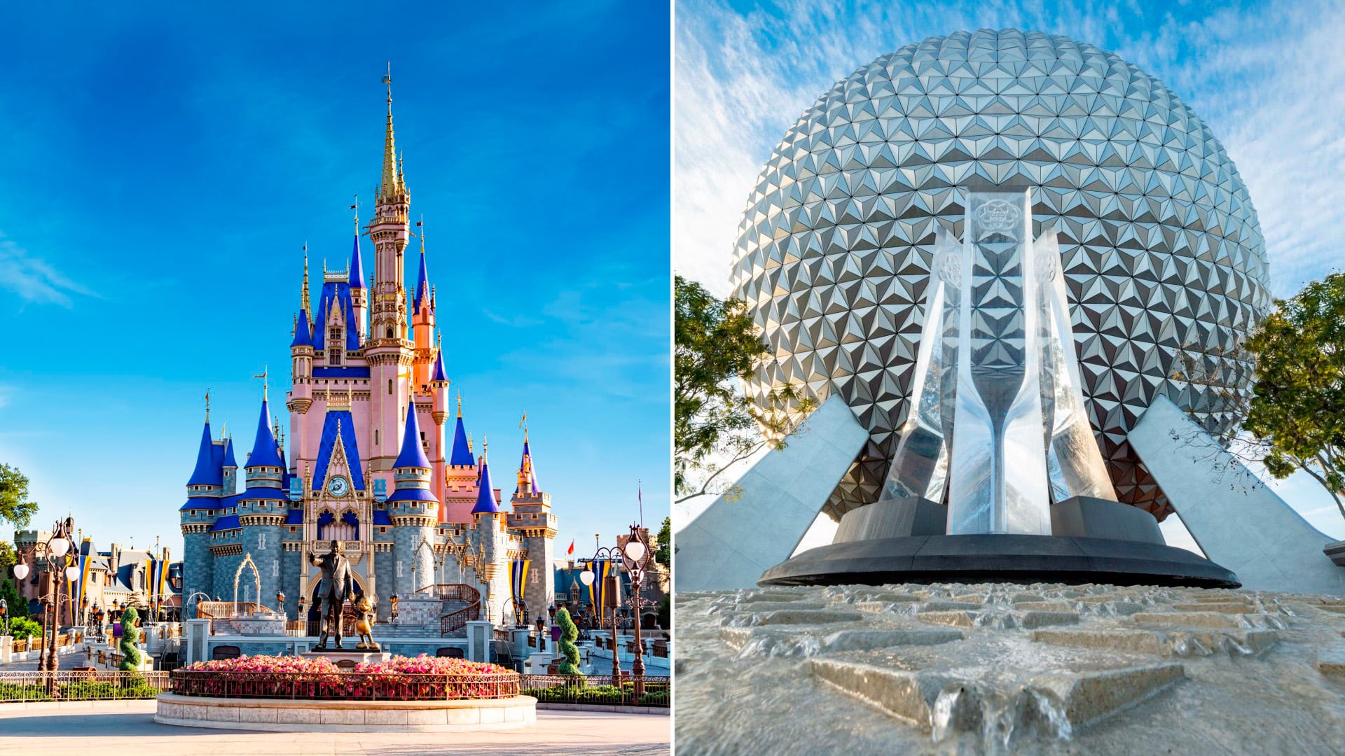 Ambos parques forman parte del conjunto de cuatro parques temáticos que integran Walt Disney World Resort. Mientras EPCOT ofrece una visión del mundo a través de la cultura y la tecnología, Magic Kingdom Park representa la esencia de los cuentos y la fantasía.