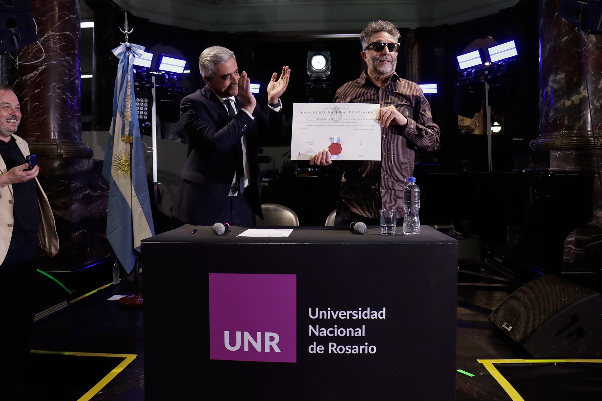 Durante el acto, el rector de la universidad, Franco Bartolacci, subrayó la trascendencia del homenaje y la deuda simbólica que la institución y la ciudad mantenían con Páez. En su discurso, la autoridad expresó: “No tengo ninguna duda de que, quienes estamos acá, somos contemporáneos de un acontecimiento que quedará grabado por siempre en la memoria de la Universidad Nacional de Rosario y de la ciudad. Gracias Rodolfo, gracias Fito”.