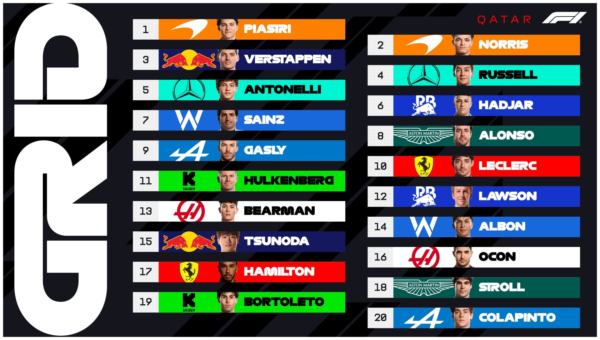 Bienvenidos al minuto a minuto del Gran Premio de Qatar de la Fórmula 1 que se correrá a 57 vueltas con la participación de Franco Colapinto.