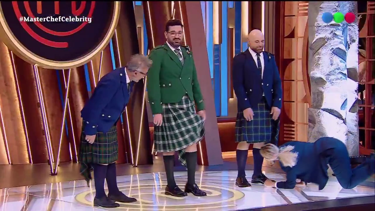 En ese contexto, Germán Martitegui intervino con ironía: “Un escocés no dice”, al reforzar el misterio y continuar alimentando la intriga sobre la autenticidad de la tradición. El intercambio habilitó una escena insólita: el también jurado Damíán Betular levantó su falda y aclaró sin rodeos: “Yo tengo, eh”, lo que generó una nueva ola de carcajadas entre los presentes.