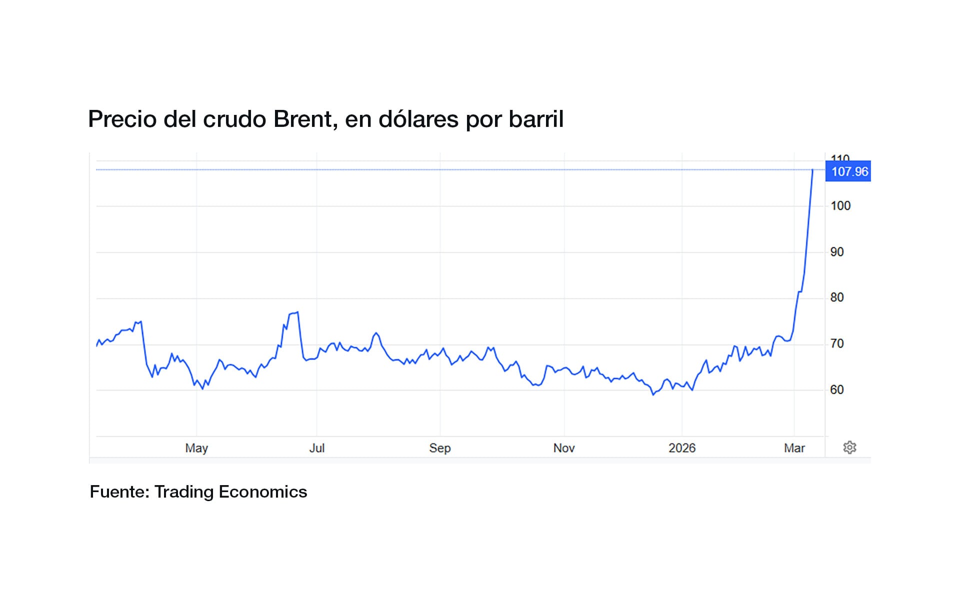 En tanto, los precios del crudo Brent, de referencia en el Mar del Norte y en la Argentina, se dispararon hasta 15%, superando los USD 108 por barril, según reportaba el domingo por la noche la consultora Trading Economics.