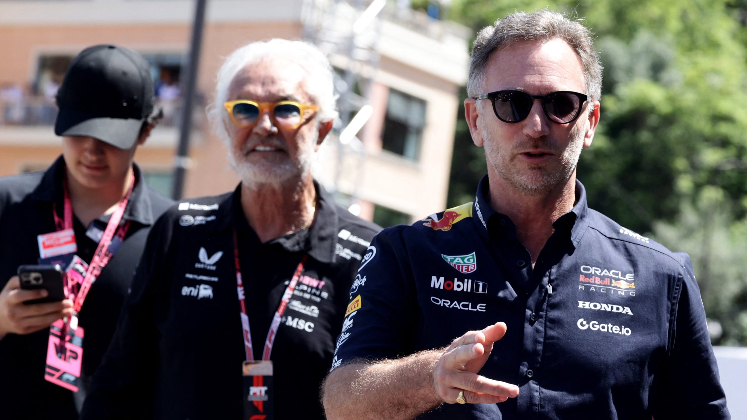 Flavio Briatore y Christian Horner. La buena relación entre ambos es clave en el posible ingreso del inglés en Alpine (REUTERS/Jakub Porzycki)