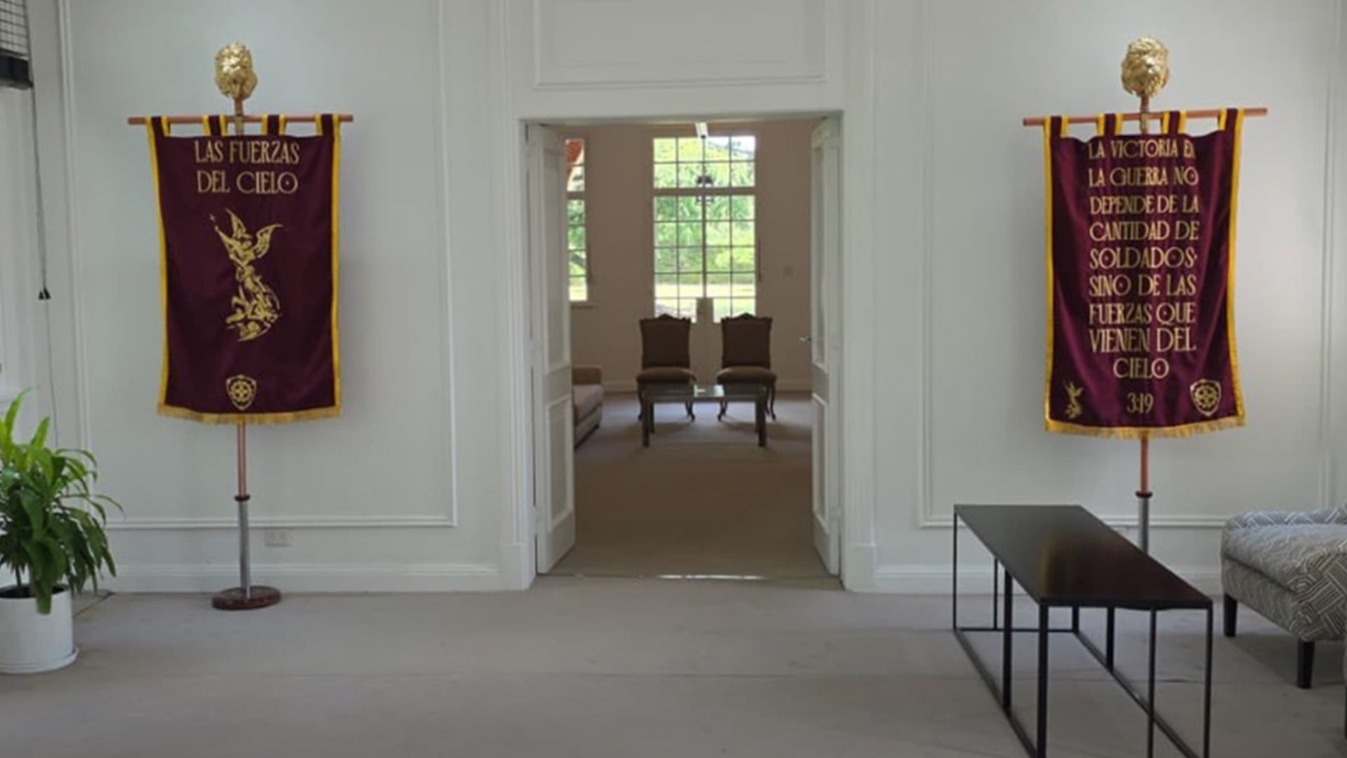 El presidente Javier Milei instaló los estandartes de estilo romano de la agrupación «Las Fuerzas del Cielo» en la Quinta de Olivos. Fue un gesto que compartió en sus redes sociales, y que expone su apoyo a uno de los sectores militantes del movimiento juvenil libertario.
