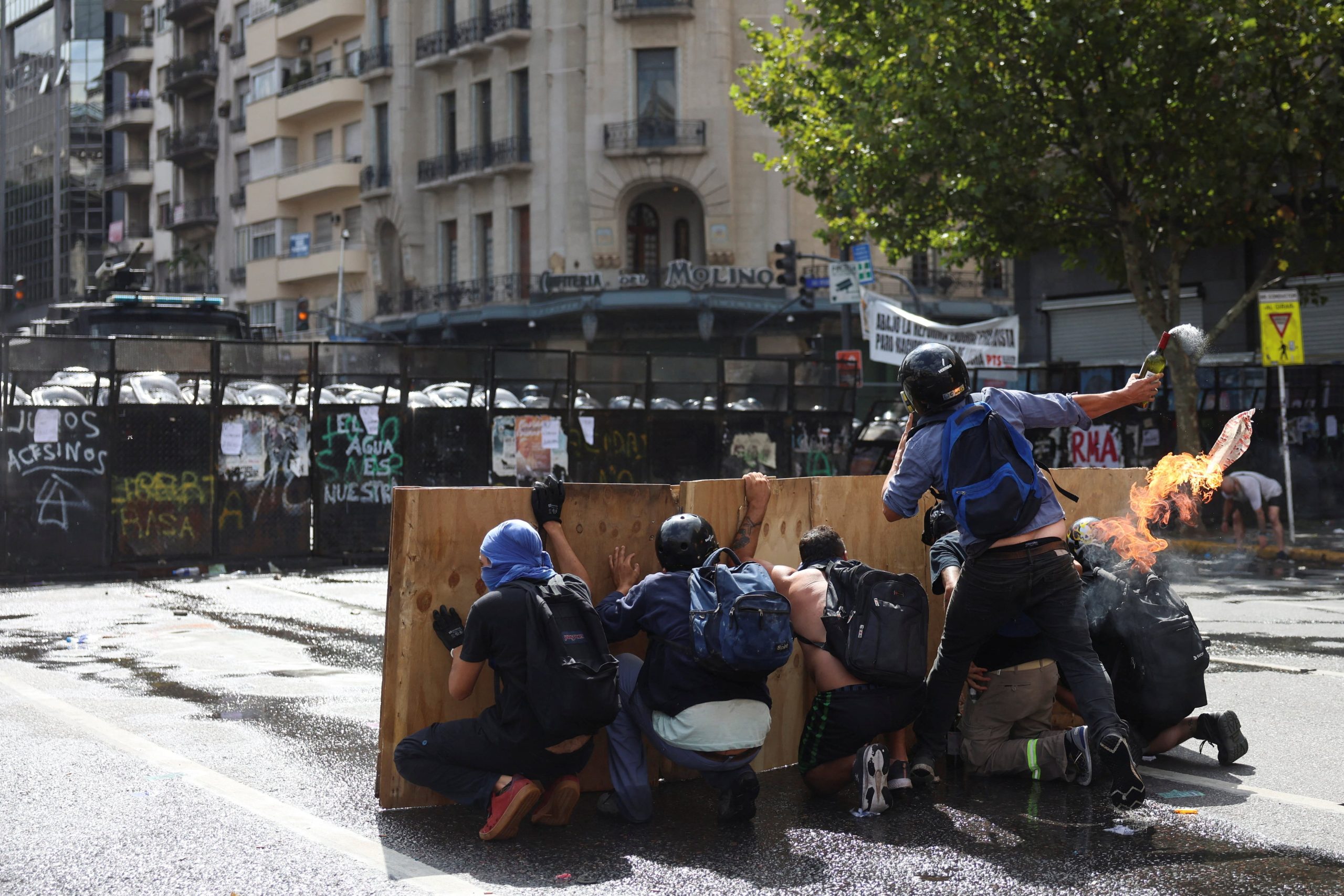Consultado sobre los responsables de arrojar bombas molotov y romper veredas, Macri afirmó: “Muchos han sido identificados. Muchos tenían máscaras antigás, la cara tapada, hay que hacer un trabajo forense hacia atrás con las imágenes”. Comparó la metodología con casos recientes: “Como el otro día que fuimos hasta Lanús a detener una banda completa que había cometido varios delitos y detuvimos a veinticinco”.