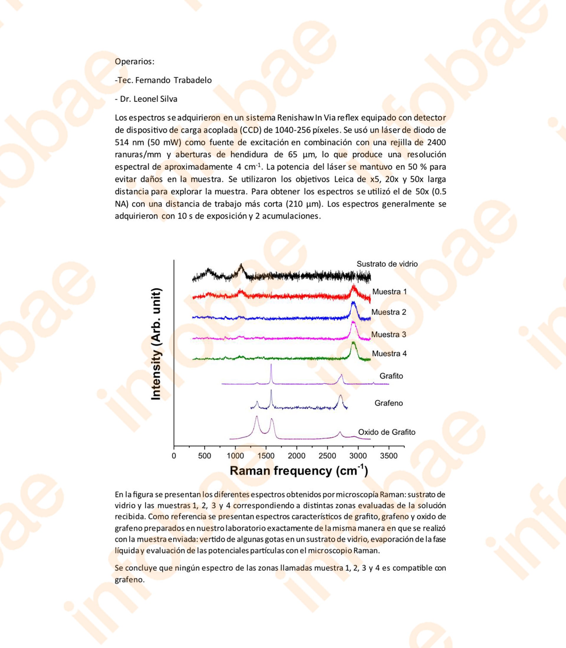 Los análisis se realizaron mediante la técnica de micro-espectroscopía Raman, una herramienta estándar internacionalmente utilizada para la identificación de nanomateriales como el grafeno, el óxido de grafeno y el grafito.