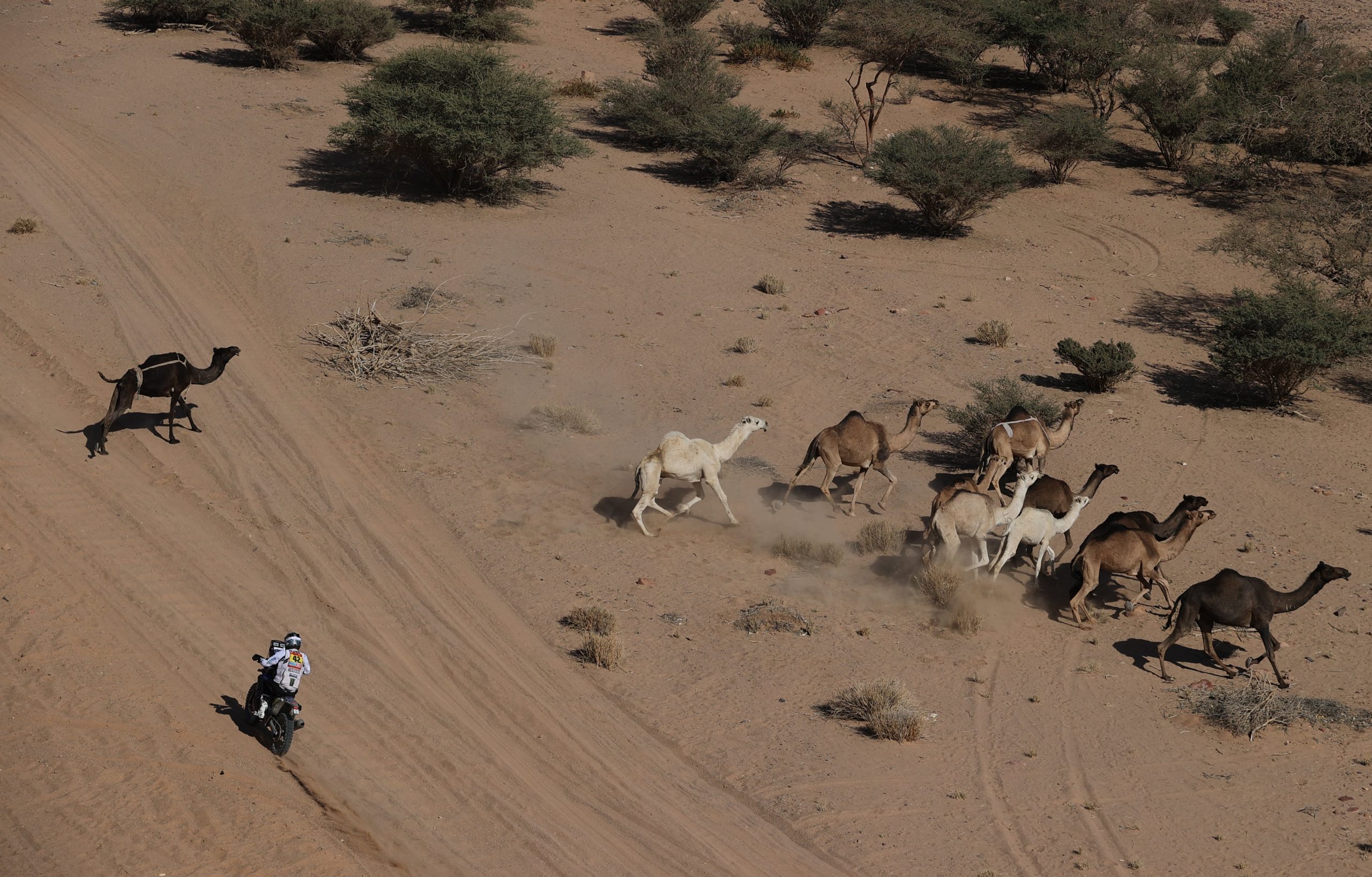 Con esa exigua distancia dominando las portadas de los medios del mundo para sintetizar una de las carreras más dramáticas de la historia de este legendario evento, hubo una imagen que se convirtió en viral porque resume a la perfección el espíritu del Dakar: una caravana de camellos interrumpió el paso de Brabec durante la anteúltima etapa y le hizo perder tiempo valioso en el resultado global de esa jornada que, a la luz de los resultados, terminó siendo clave para el título de Benavides.