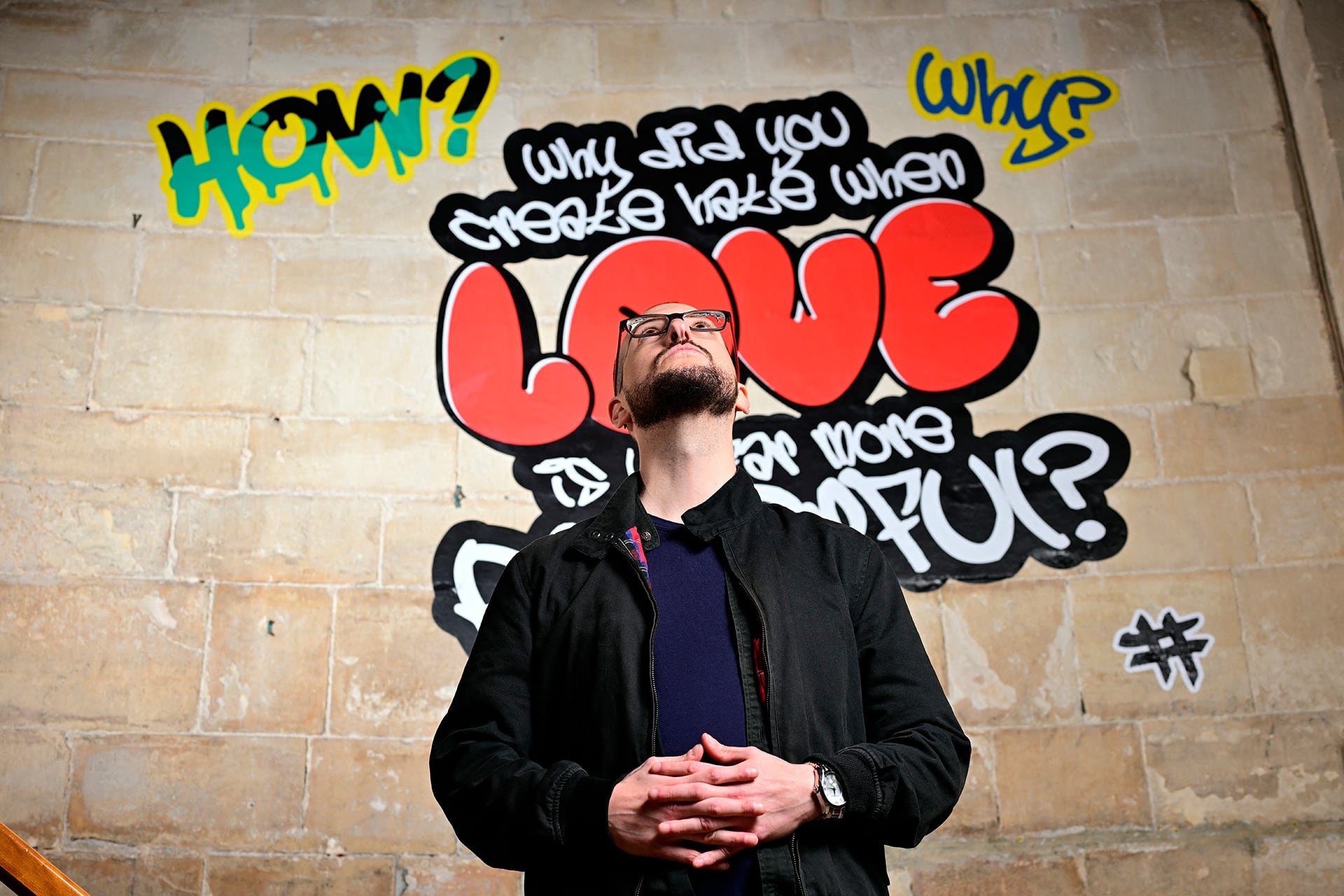 La Catedral de Canterbury sorprende con una exposición de grafitis que invita a dialogar con Dios (Foto: Ben Stansall / AFP)