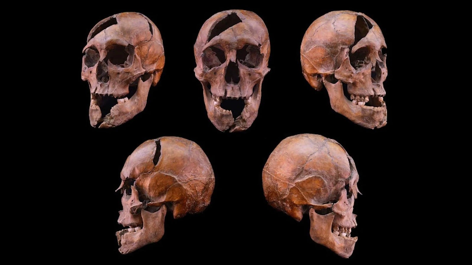 El estudio antropológico constata al menos 26 heridas perimortem en el cuerpo, incluidas nueve en el cráneo y 17 en otras partes. Las lesiones muestran cortes profundos de armas blancas —probablemente sables y espadas largas— y sugieren un ataque coordinado por tres personas.