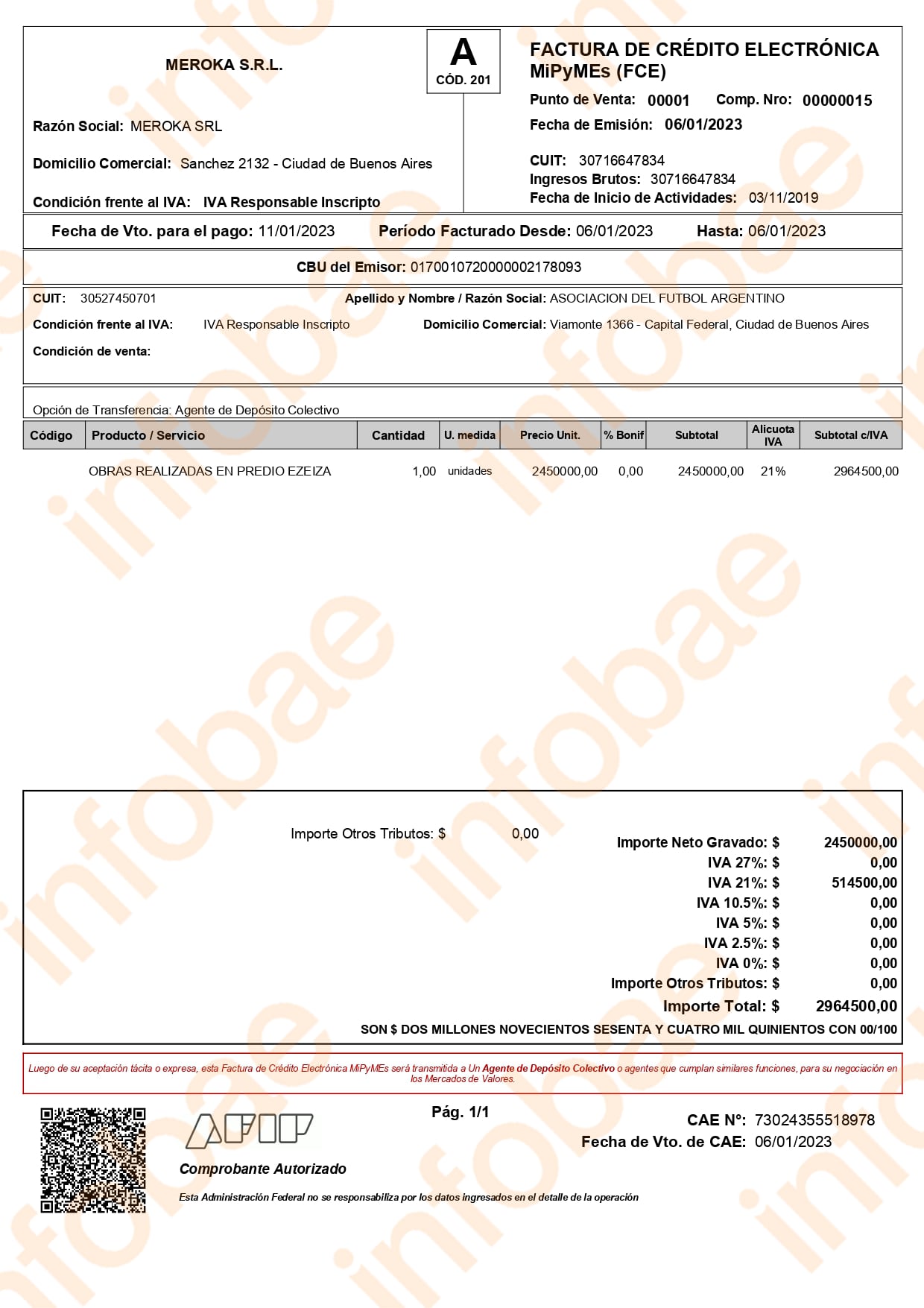 Entre los elementos centrales de la presentación figuran facturas emitidas por al menos quince empresas, que ARCA identifica como proveedoras sin capacidad económica, operativa ni financiera real para prestar los servicios facturados a la AFA. Estos comprobantes, incorporados formalmente a la denuncia, corresponden en su mayoría a los años 2023 y 2024 y están vinculados principalmente a supuestas obras y servicios en el predio de Ezeiza, uno de los activos estratégicos de la entidad que conduce Tapia.