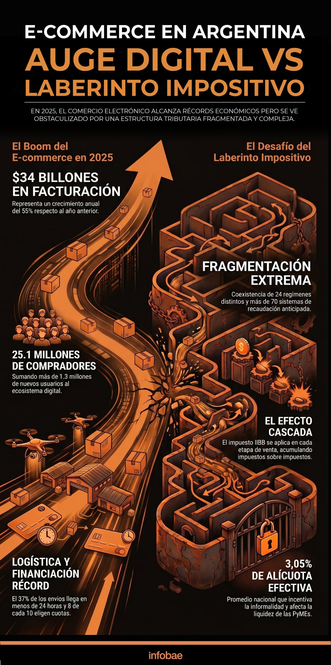 La Argentina se ubica como el tercer mercado de e-commerce más grande de la región, con una facturación superior a los $34.033.238 millones y un crecimiento interanual del 55%. En ese contexto, el informe señaló que el sistema impositivo impacta de manera directa sobre la dinámica del sector y sobre las decisiones de formalización de los actores económicos.