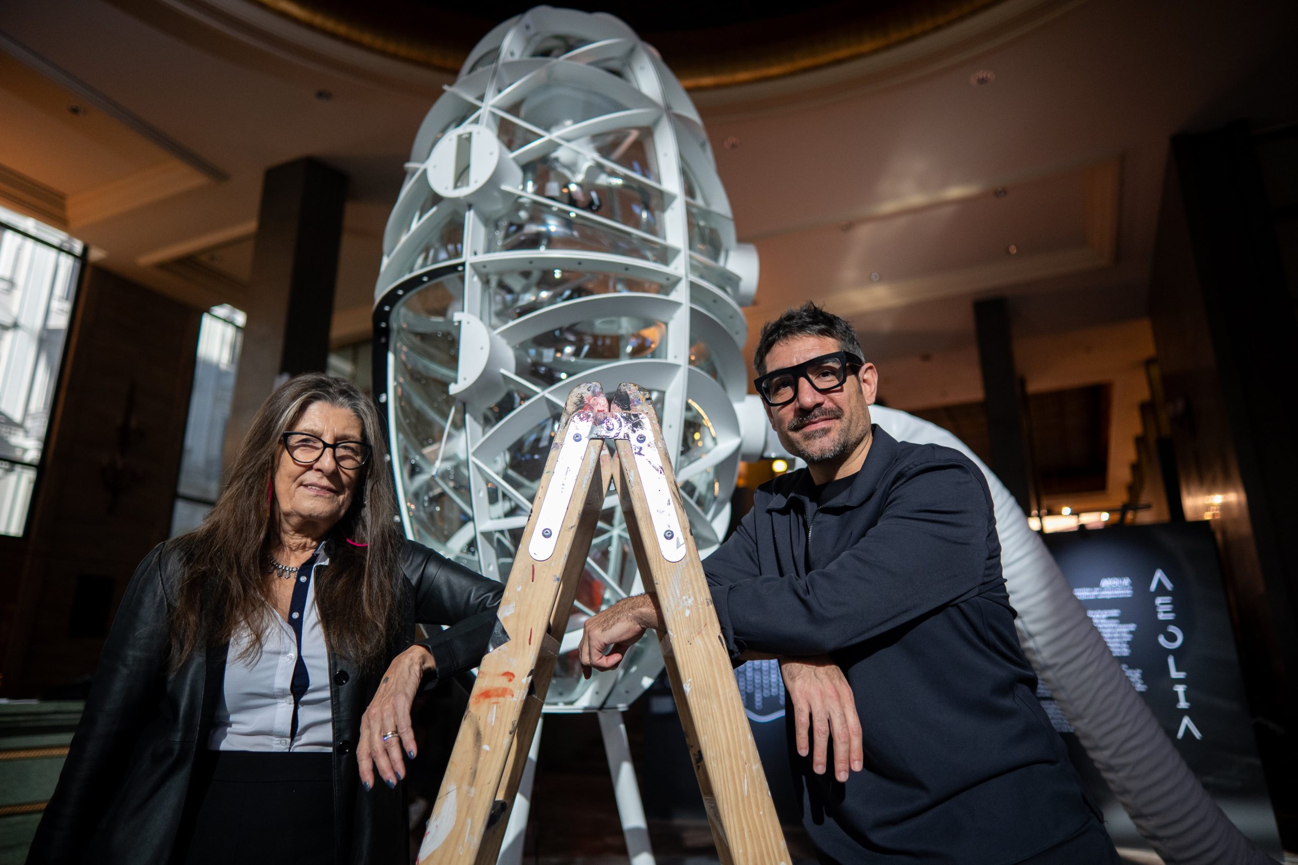 La pieza central de Aeolia es una escultura interactiva de gran formato que actúa como un aerogenerador capaz de transformar la energía del aire en palabras. El sistema, conectado a un modelo de inteligencia artificial entrenado con el texto original de El Quijote, traducciones y una amplia bibliografía, genera nuevas variaciones del clásico cervantino. “El proyecto no revisa el texto original, sino que lo reinterpreta como metáfora del pensamiento humano frente a la máquina, planteando una reflexión sobre la autoría, la memoria y la sostenibilidad futura”, menciona el Instituto Cervantes.