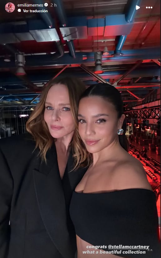 “Felicitaciones. Qué hermosa colección”, le dedicó una story Emilia Mernes a la diseñadora británica Stella McCartney (Instagram)