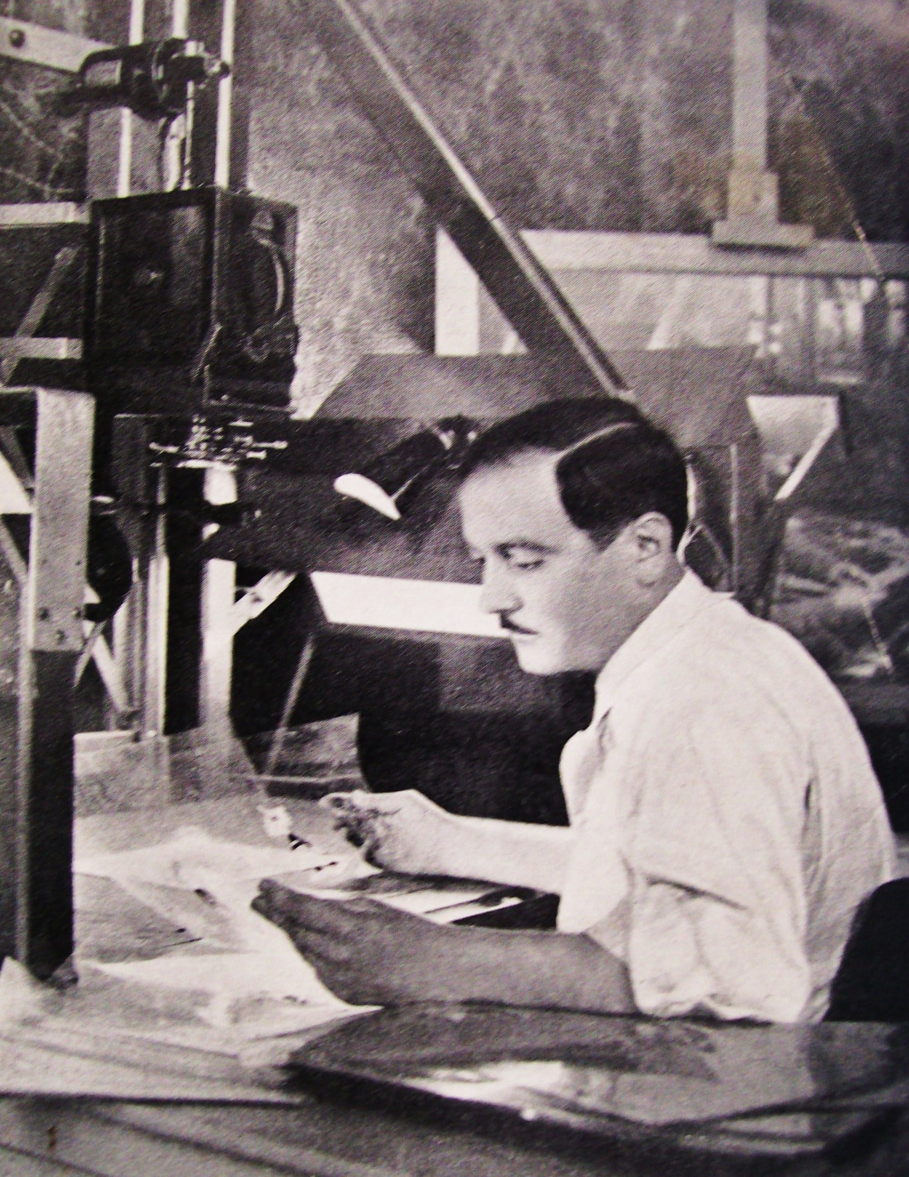 Quirino Cristiani, en plena paciente tarea de armar una película animada