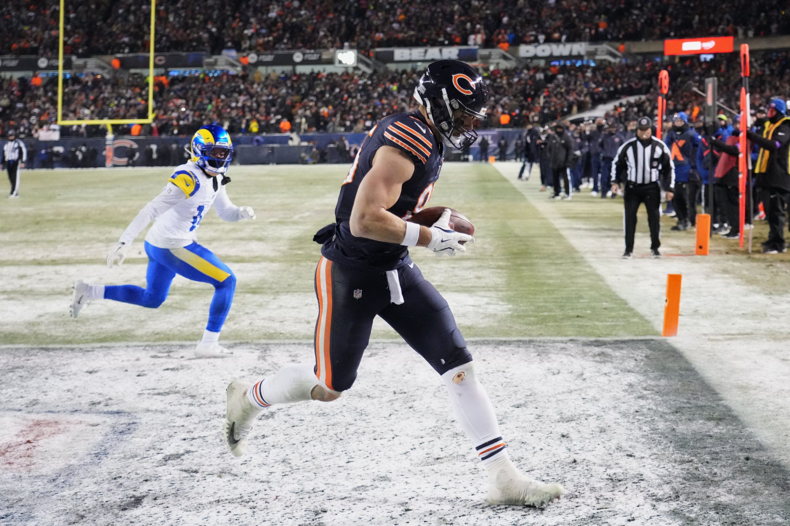 “Pareció un pase fácil. Todo ocurrió en cámara lenta. No puedo creer los lanzamientos insólitos que puede hacer Caleb”, afirmó Kmet, autor material de la anotación.