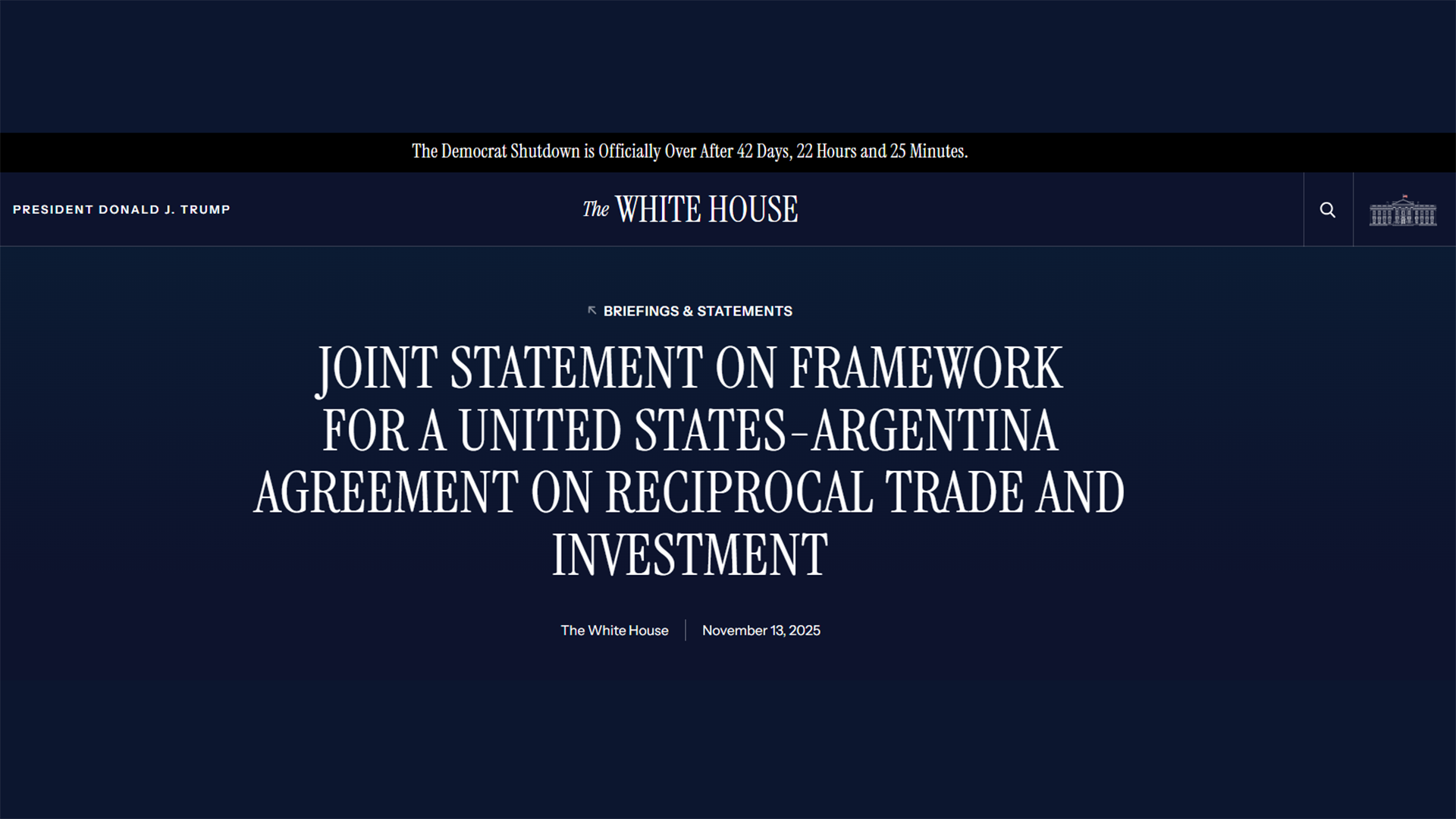 La Casa Blanca informó este jueves que alcanzó un Acuerdo sobre Comercio e Inversión Recíprocos con la Argentina y así se formalizó el entendimiento que se venía negociando en los últimos meses. En ese sentido, los principales funcionarios del Poder Ejecutivo como dirigentes de La Libertad Avanza destacaron la medida a través de las redes sociales.