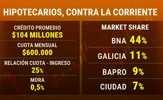 La periodista remarcó que el Banco Nación lidera la oferta de estos préstamos, impulsado por mantener la tasa más baja del mercado. “Cerrarán el año con cerca de 20.000 hipotecas otorgadas, la mitad de lo proyectado para un lapso de cuatro años, impulsado por mantener la tasa más baja del mercado, lo que atrajo la concentración de la demanda aún frente al endurecimiento del crédito en otros bancos privados”, detalló