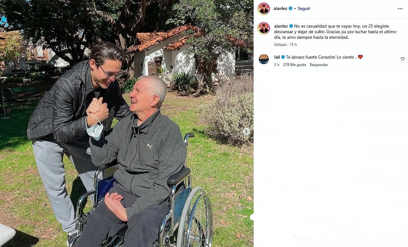 Pocas horas después de cumplir 30 años, Alan anunció la muerte de su padre con un mensaje de agradecimiento por su lucha. “No es casualidad que te vayas hoy, un 25 elegiste descansar y dejar de sufrir. Gracias pa por luchar hasta el último día, te amo siempre hasta la eternidad”, publicó en sus redes sociales. El mensaje estuvo acompañado de imágenes junto a su padre en la infancia y en los últimos días de su enfermedad.