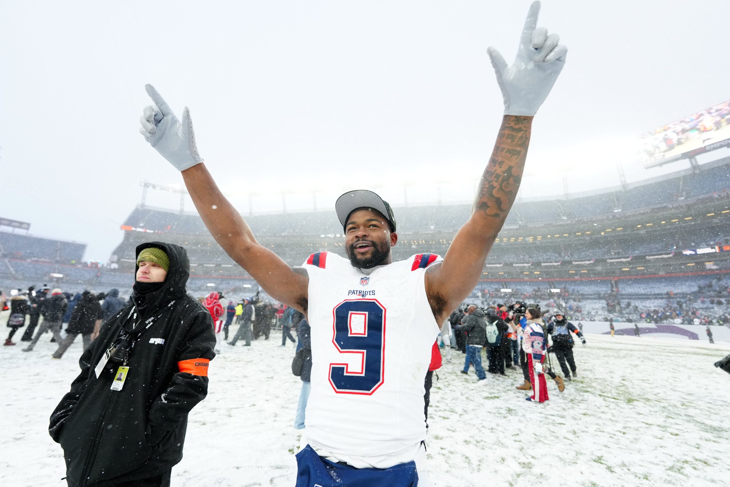 Bryce Baringer, pateador de New England Patriots, bajo la nevada de Denver (AP Photo/Garrett W. Ellwood)El quarterback Jarrett Stidham de Denver Broncos corre tratando de avanzar yardas en los minutos finales contra los Patriots (AP Photo/Ashley Landis)Los Patriots volverán a jugar el Superbowl (Reuters)