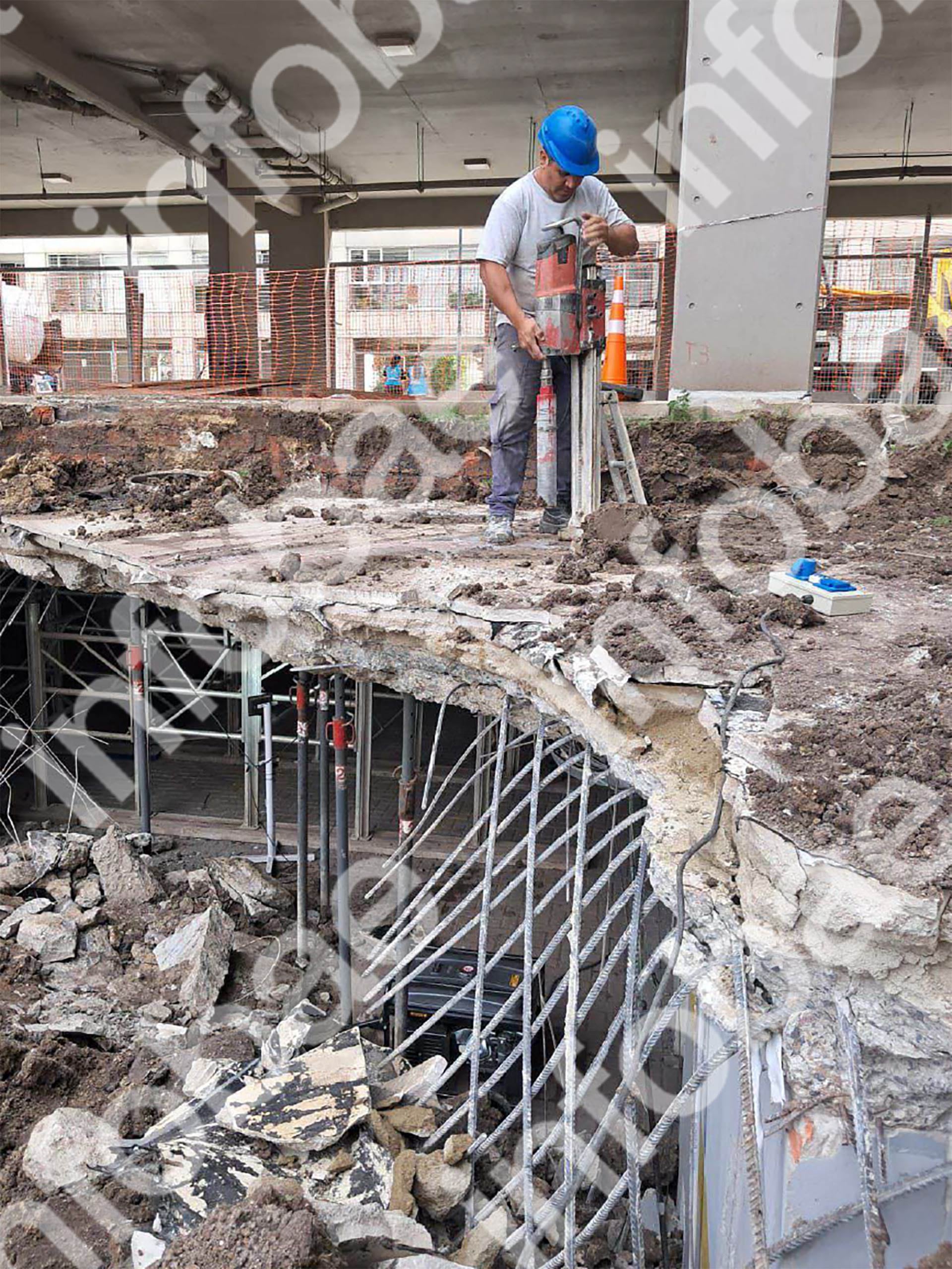 Sobre la losa se detectó un relleno de 40 centímetros de suelo, cubierto por una capa tipo laja. Esta sobrecarga, combinada con filtraciones, profundizó el deterioro y fue señalada como posible causa del colapso.