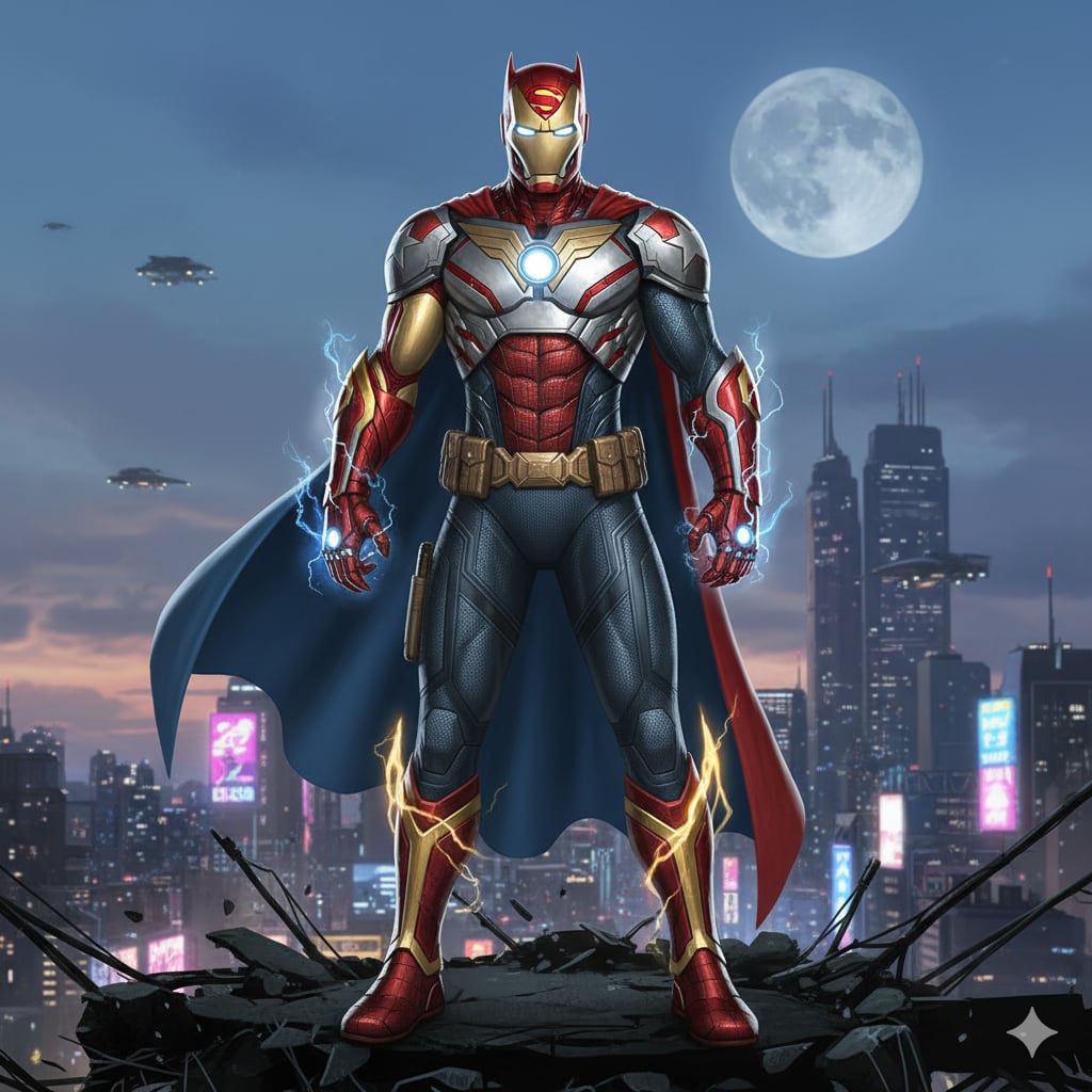 Al solicitar esta tarea a Gemini, la IA de Google, esta ofreció una imagen en que se puede ver un superhéroe que mezcla a Superman, Batman, Iron Man, Thor y Capitán América. Estos son los rasgos que tiene de cada uno de ellos: