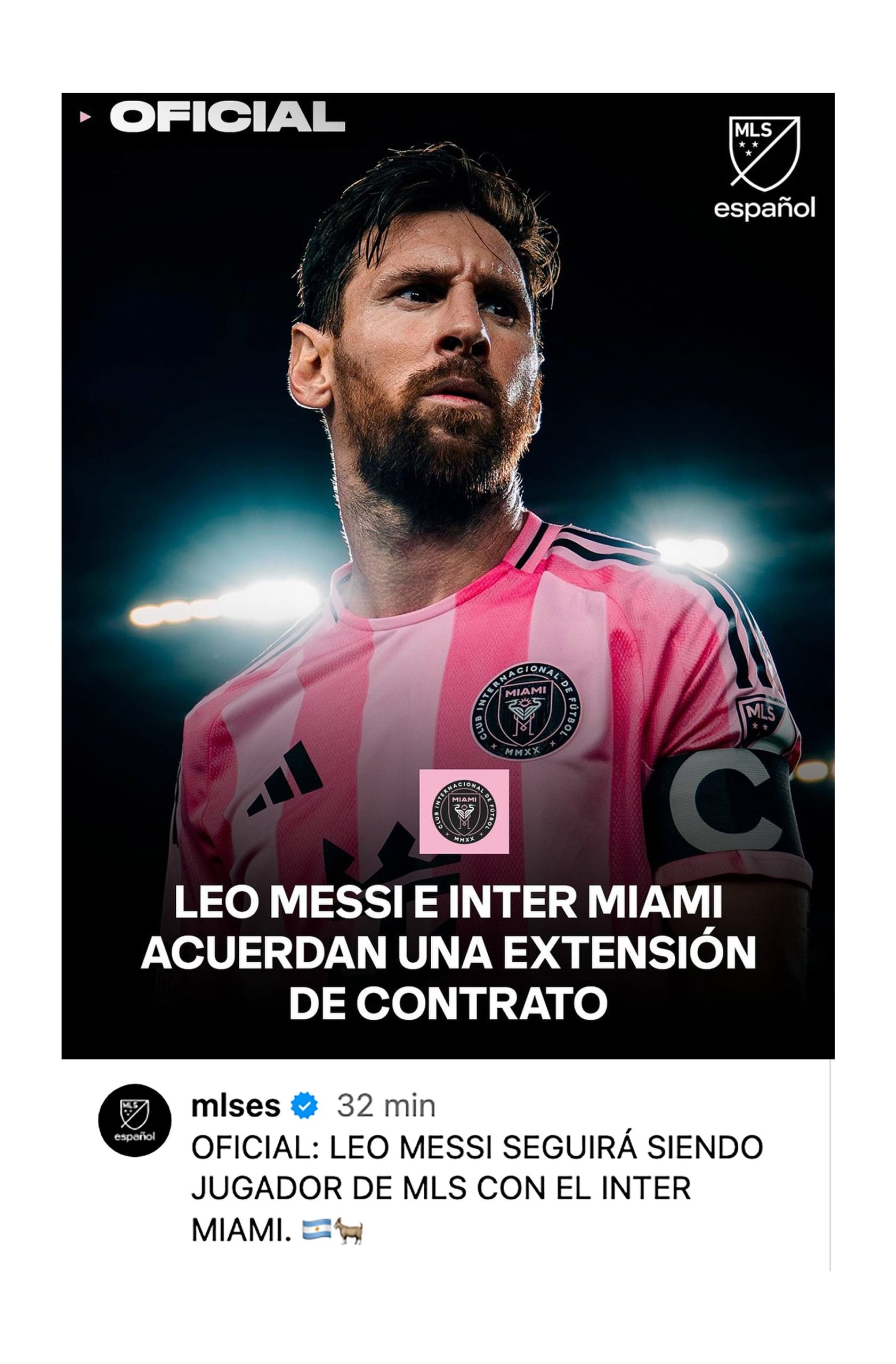 El perfil del torneo norteamericano también realizó un posteo para anunciar que Messi e Inter Miami acordaron “una extensión de contrato” aunque hasta el momento no se informó la fecha de finalización.