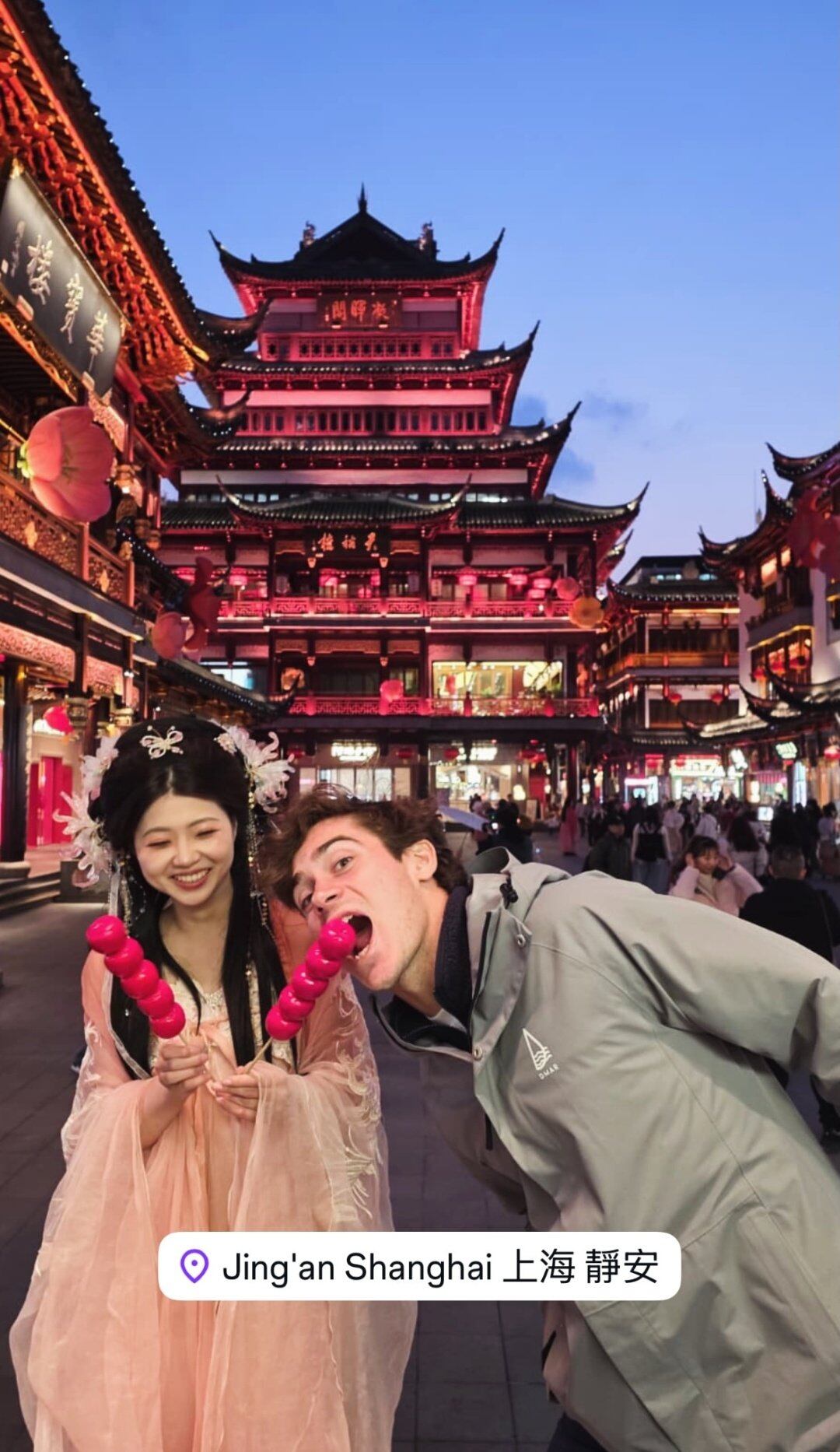 Luego aprovechó su paso por el distrito central de Jing’an, donde se fotografió para las redes sociales y compartió el entusiasmo previo a su estreno en el trazado chino.